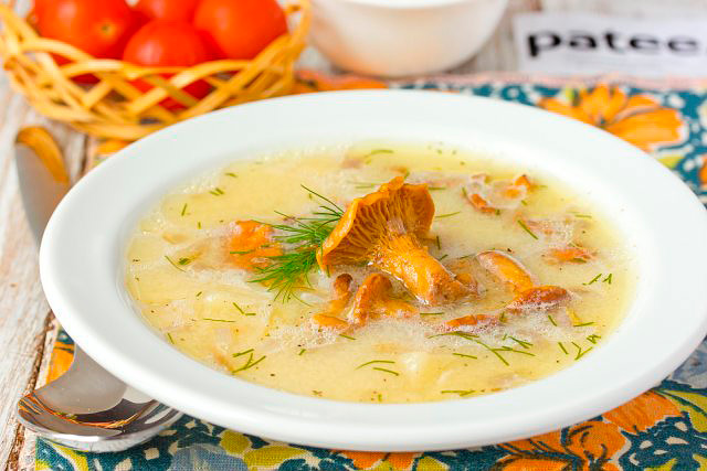 Сырный суп с лисичками и курицей
