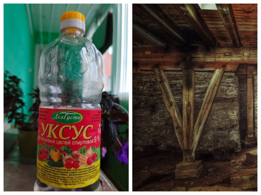 В подвале желательно расставить как минимум 15-20 емкостей с уксусом – по углам, вдоль стен, на полках, на что потребуется 2,5-3 литра уксуса белого столового.