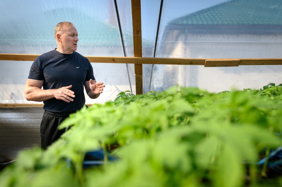 – Картофель выращиваем через рассаду, – рассказывает Михаил. – Достаем посадочный материал примерно за месяц до посадки в открытый грунт, чтобы на нем появились ростки. Уже 18 марта высадил клубни в рассадные стаканчики: положил их в емкости, присыпал грунтом, полил теплой водичкой и поставил в теплице. Там у нас тепло, картофель быстро прорастет. В начале апреля планируем его высадить в открытый грунт, сверху накроем укрывным материалом.