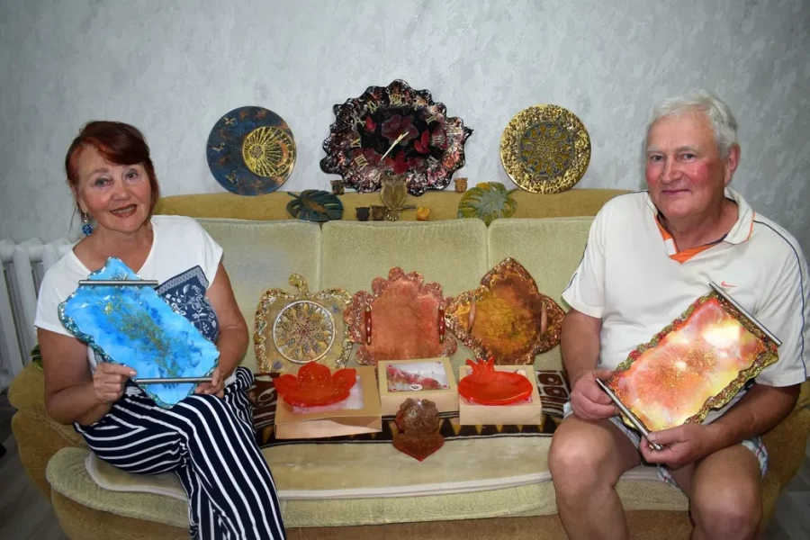 – Но в начале 2000-х мы пришли к выводу, что покупательской способности никакой, – рассказывает Евгения Николаевна. – Стали сдавать объекты в аренду, потом все продали. Когда закончили с предпринимательством, у меня словно крылья за спиной выросли, потому что это очень тяжело сегодня. Какое-то время пожили для себя, каждый год ездили с друзьями в Испанию, отдыхали там по два месяца. Потом визы наши закончились, да и с путешествиями стало сложнее. Нужно было чем-то себя занять. В марте прошлого года сидела я в Ютубе и увидела ролик про изделия из эпоксидной смолы. Поскольку люблю все красивое, меня это очень заинтересовало.