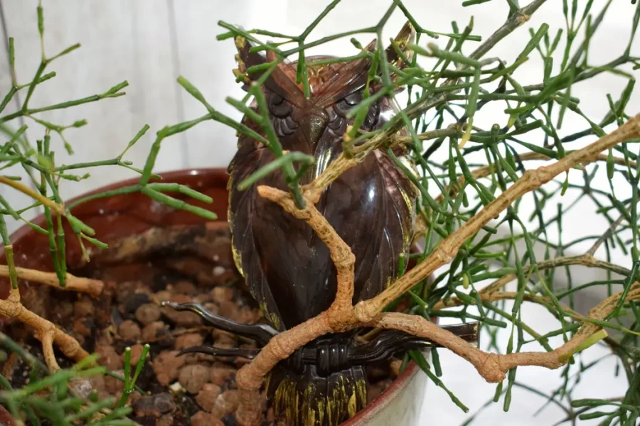 Первыми изделиями Евгении Николаевны стали небольшие фигурки совушек из эпоксидной смолы. Потом появились вазочки, панно для декора и фотографий, подносы, серьги. Николай Иванович, увидев, насколько жена увлечена и как красиво у нее получается, сказал: «Милая, мы сейчас будем серьезные вещи делать»! И в их ассортименте появились часы, столики.