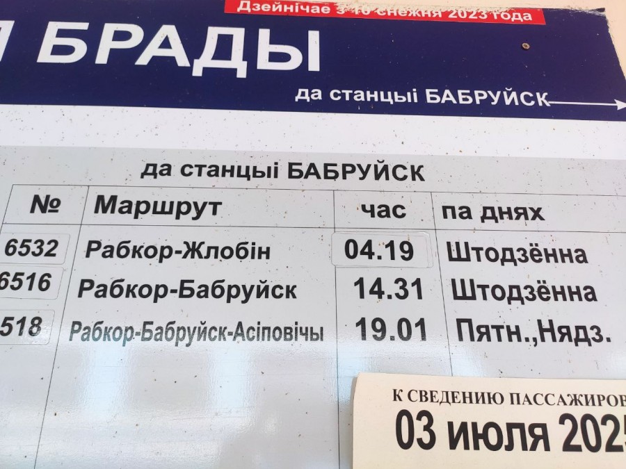 В 18.30 (на всякий случай заранее!) счастливые и уставшие приходим на станцию. Там почему-то подозрительно тихо, ну прямо ни одного человека. Еще раз смотрим расписание и на этот раз видим, что поезд на Бобруйск в 19.01 ходит только в пятницу и в воскресенье! Почему-то своим глазам не верим. Ну никак такого быть не может, потому что нам нужно добраться домой! Следующий поезд на Бобруйск есть только в 4.19 утра.