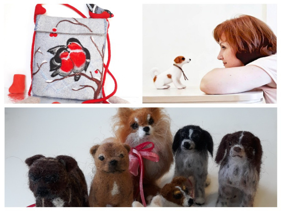 Следом за сухим валянием Ирина освоила мокрое. Тапочки, сумки, броши, картины, интерьерные игрушки, предметы декора – всего и не перечислить из списка освоенных ею изделий.