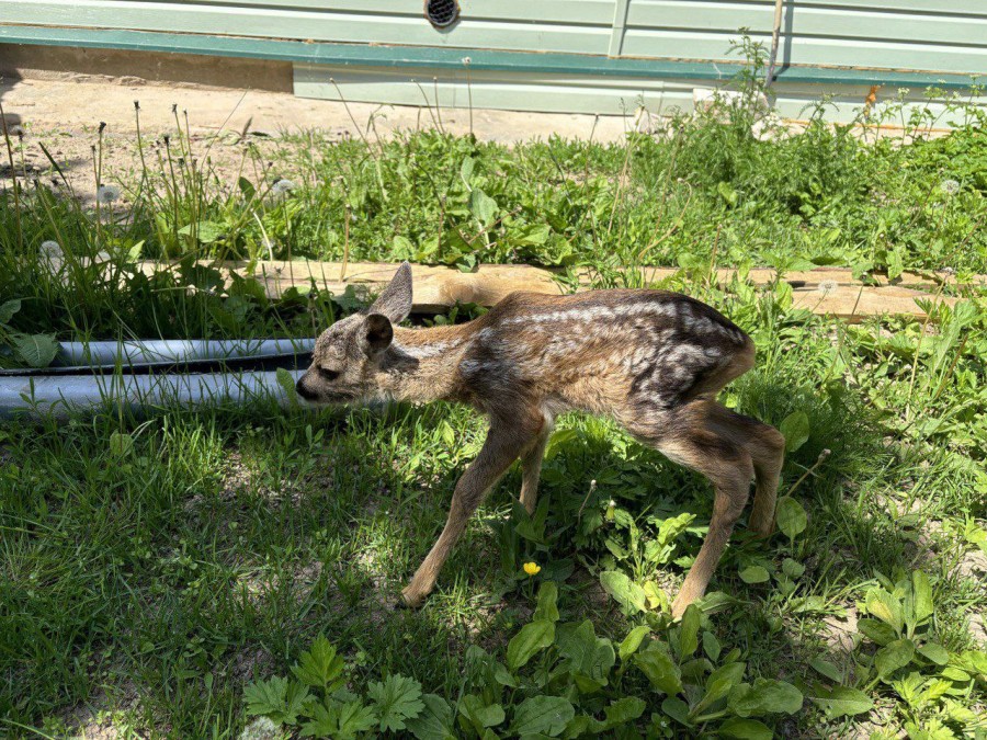 В Чаусах на прилегающей к частному домовладению территории хозяин дома обнаружил крошечного детеныша косули, за которым охотилась лиса. Он спас малыша.