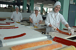 – Конечно, стоит учесть определенные традиции, которые передаются из поколения в поколение. Ведь технологии пищевого производства достаточно просты и даже примитивны по сравнению с продукцией предприятий, выпускающих космическую технику. Но… Если брать металл определенной марки и обрабатывать на определенном станке, то продукция будет унифицирована: что в России, что в Грузии. А вот вкус яблок в каждом регионе у сортов свой… И я не зря сказал о яблоках. Заготавливаем ежегодно по осени около 1200 тонн яблок. Принимаем от населения, от хозяйств поздние сорта, богатые пектином, к примеру, антоновку. Большую роль в нашем деле играет наличие пектина. Мы долго с зарубежными партнерами отрабатывали технологию производства пектина именно для нашего предприятия. Сегодня линия, на которой производится жевательный мармелад, работает в три смены. А начинали с того, что не знали, чем линию загрузить. Она работала в одну смену…