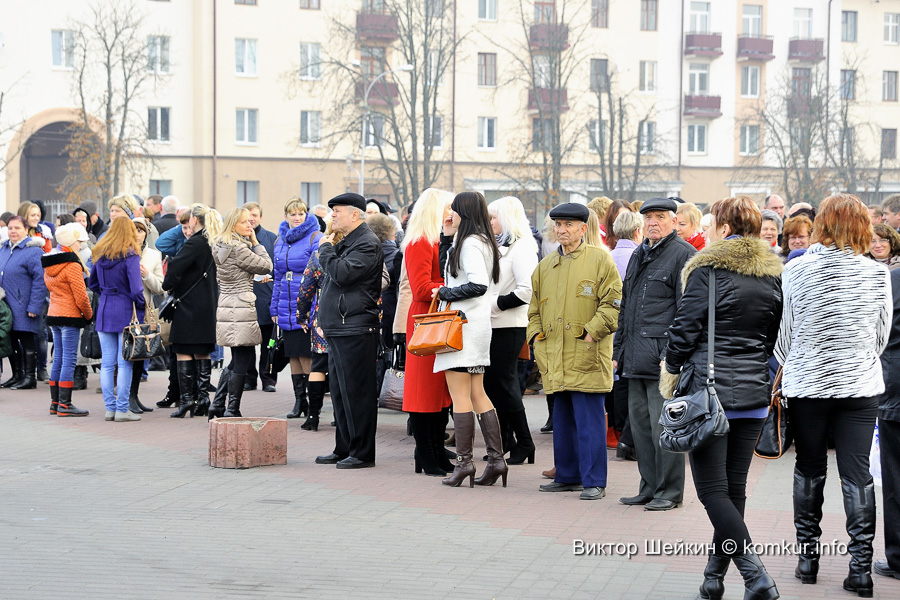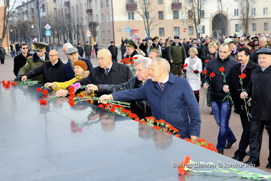 Главная площадь имени вождя революции 7 ноября собрала вместе около тысячи горожан, желающих отдать дань памяти празднику советских лет. Военный оркестр исполнил гимн страны. Представители политических партий, трудовых коллективов Бобруйска, ветераны возложили венки и цветы к подножию памятника Ленину. Многие зрители праздничного действа после церемонии возложения отправились на концертную программу в городской парк культуры и отдыха. Благо, праздничному настроению в этот день сопутствовала теплая погода!