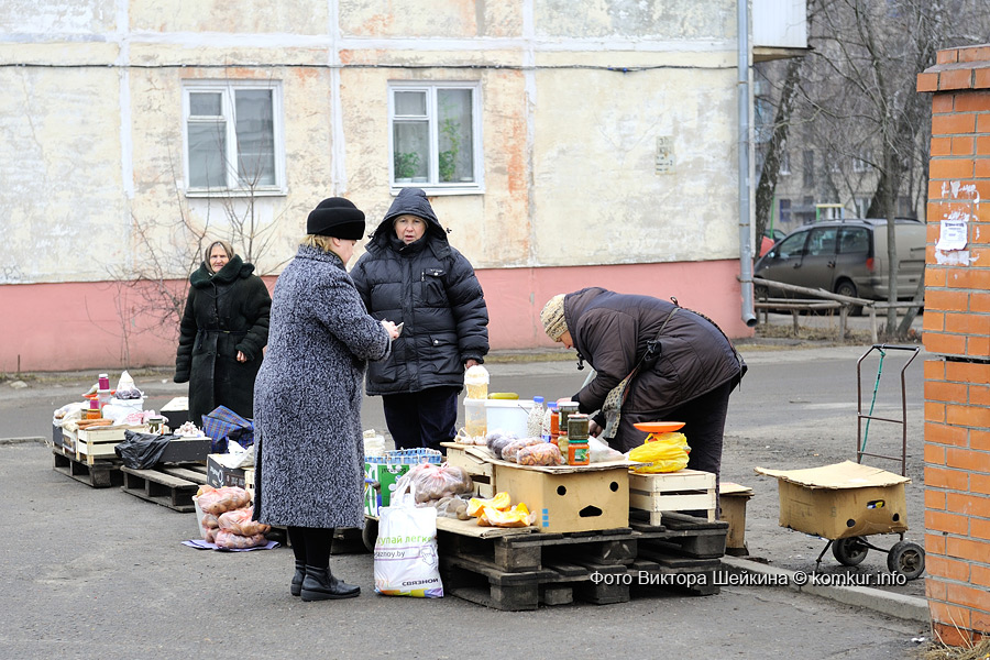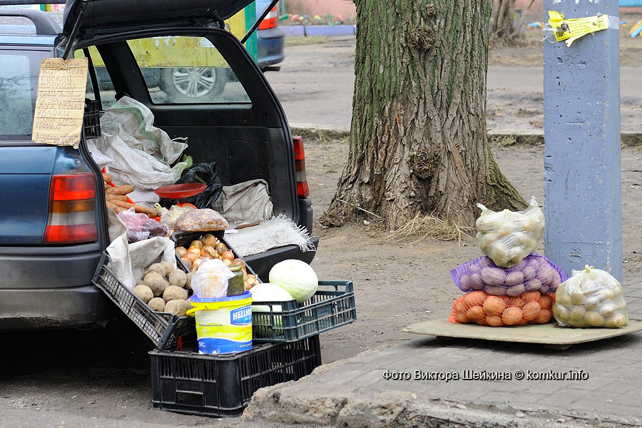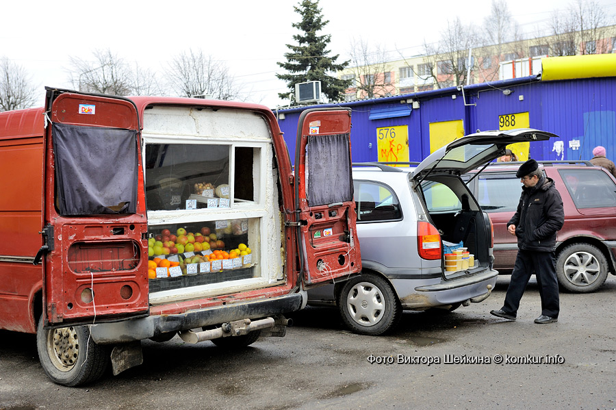 За прилавками микрорынков стоят, как правило, «производители» продаваемой продукции. А своего рода пропуском на торговое место является справка о наличии у торгующего собственного приусадебного участка. Пучок лука, кастрюля квашеной капусты, ведро картошки — вот, собственно, основной здешний ассортимент. Есть, конечно, заморские фрукты, но у их продавцов отношения с хозяевами микрорынков давно поставлены на коммерческую основу.