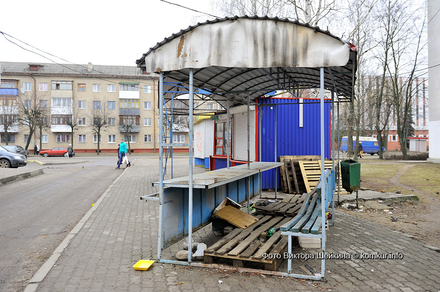 На месте микрорынка на пересечении улиц Минской и Шмидта навесы и все, что к ним полагалось, забрали буквально за день до нашего приезда. Со спартанских железных скамеек народ пересел на ящики. Увидев журналистов, на месте микрорынка стал собираться народ.