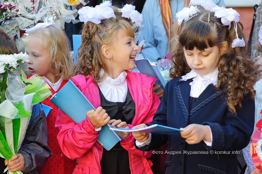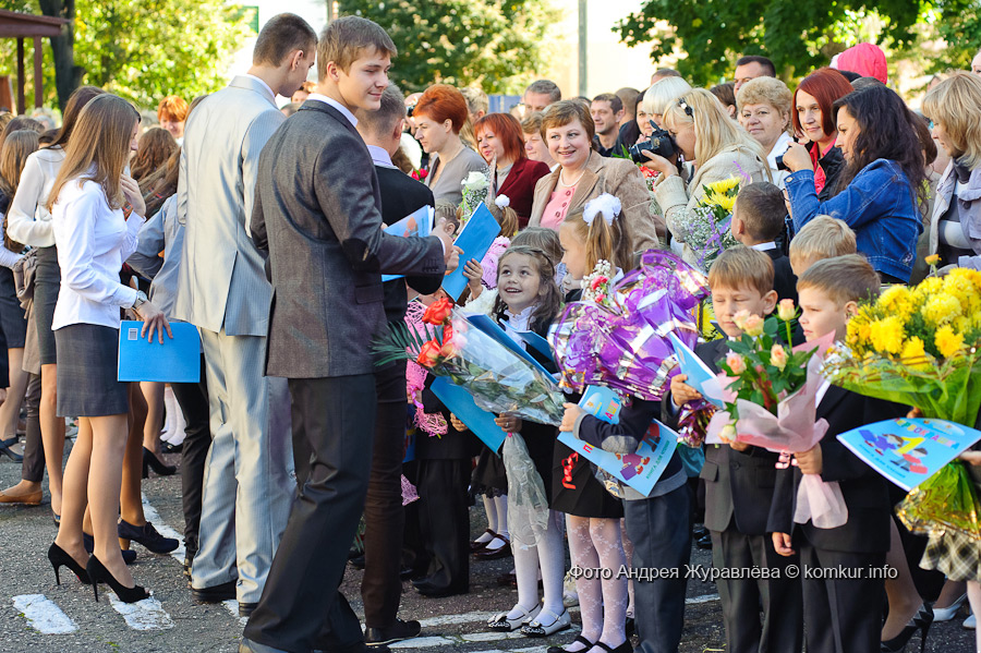 Первые классы располагаются в старом корпусе гимназии. Елена Михайловна Кожевникова, классный руководитель 1 «А», знакомится с учениками: впрочем, с половиной она уже знакома — по подготовительным занятиям, по репетициям ко Дню знаний. А у некоторых старшие сестры или братья делали первые шаги в Страну знаний как раз под ее руководством.