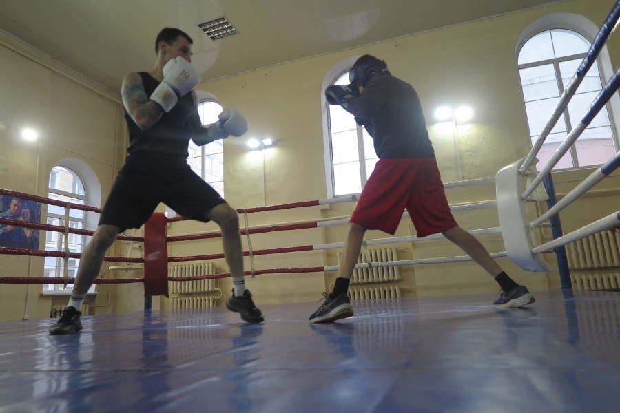 И правда, два боксера, ни капли не смущаясь камеры, дрались на ринге в огромном зале с арочными окнами.
