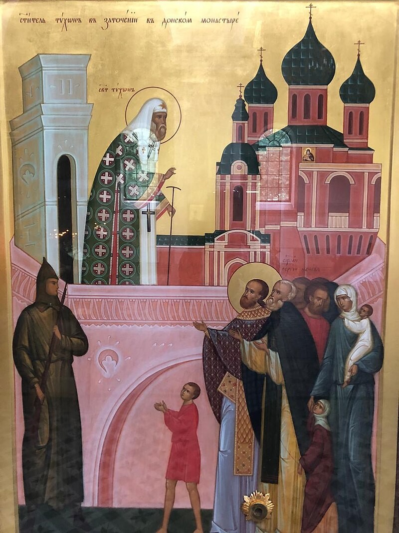 С мая 1922 года по распоряжению властей Патриарх Тихон был изолирован на территории Донского монастыря в Москве – «за антисоветскую деятельность». Его темница находилась в небольшом двухэтажном домике рядом с надвратной церковью в честь Тихвинской иконы Божьей Матери. Здесь святитель пробыл больше года – до июня 1923 года.