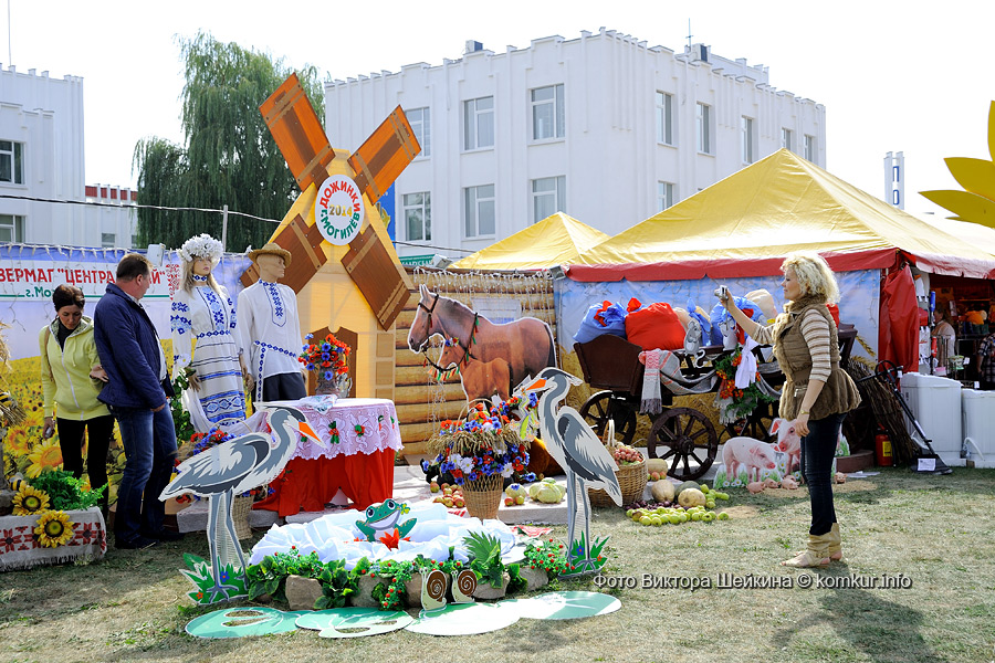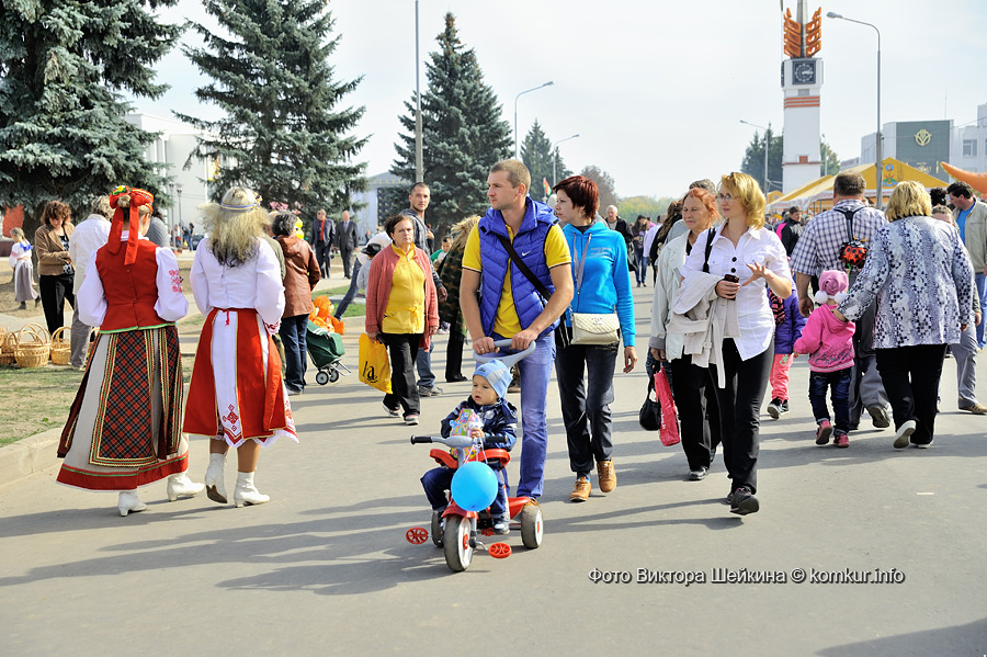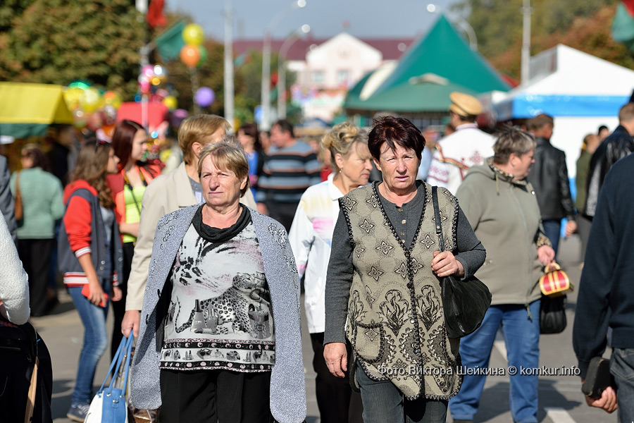 …Чтобы обойти всю ярмарку на фестивале, нам еле хватило одного дня! Праздник хлеба, сала, меда, картошки… Выставка сельскохозяйственной техники. Конноспортивные выступления. Аттракционы и детские представления. Ремесленные экспозиции, урожайные, фольклорные, исторические… Торговые ряды с блинчиками, шашлыками и салатами, а также с одеждой, техникой и сувенирами. Глаза просто разбежались! Многие гости фестиваля оказались из Бобруйска: