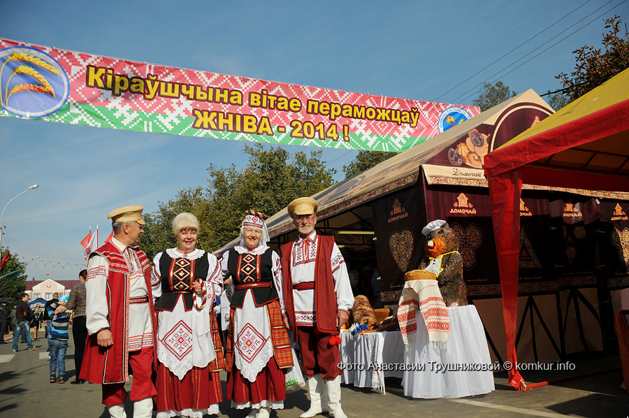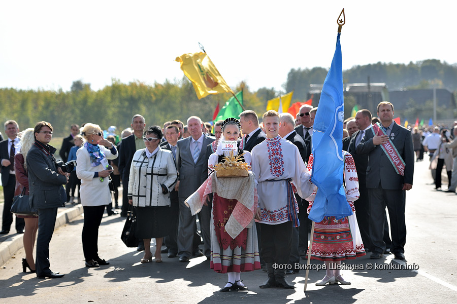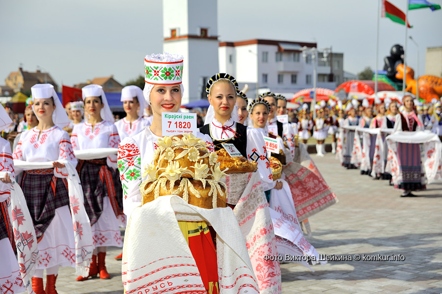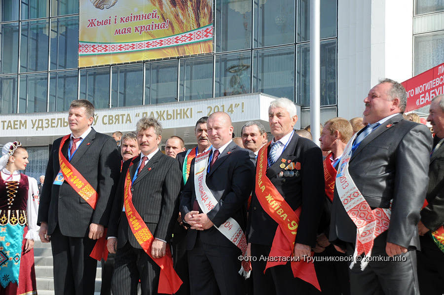 Приехали и удивились! Где скромная, серая деревушка, какой она была раньше? Праздник развернулся на полдеревни — шумно, ярко, многолюдно! Конечно, главными героями стали наши добытчики хлеба — мужчины с гордыми надписями на груди: «Пераможцы жнiва 2014». Как оказалось, на полях области во время массовой уборки работало около 1600 экипажей зерноуборочных комбайнов и водителей, на сушке было задействовано свыше 450 зерноочистительных комплексов. Общий намолот в нашей области равняется внушительной сумме — 1 миллион 392 тысячи тонн зерна. Лучшими операторами зерносушильных установок в нашей области, наряду с коллегами из Могилевского района, стали Виктор Петрович Евдокимов, Сергей Петрович Сивченко, Александр Александрович Максименко из СПК «Рассвет» им. К. П. Орловского Кировского района.
