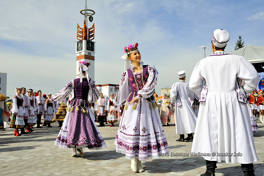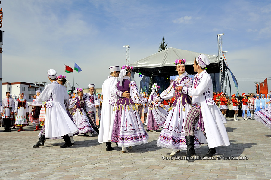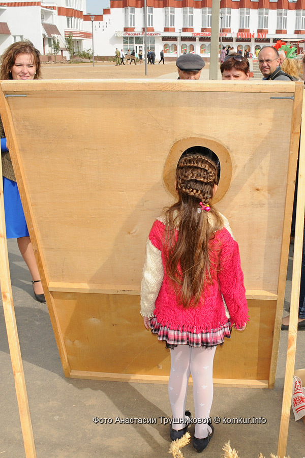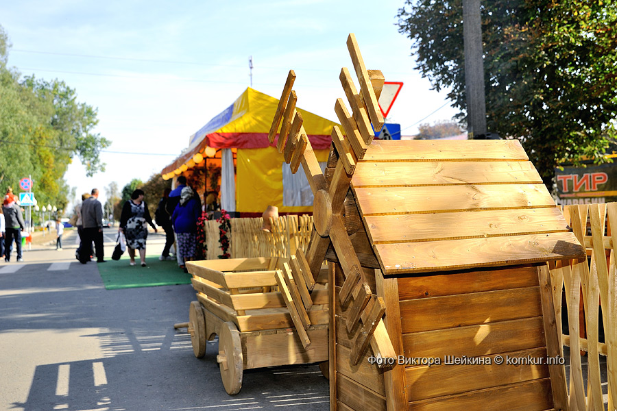 Главная улица города на время праздника стала пешеходной, на ней растянулись торговые палатки со всякой всячиной. Под громкую музыку гуляющие могли прикупить вязаные носки, деревянные ложки или пластиковые игрушки — несмотря на то, что палаток было много, выбор широким не оказался. Кроме кировчан, на празднике гостей было не много: большинство сюда «заглядывало» проездом, по дороге к главному месту проведения — деревне Мышковичи. Отправились туда и мы.