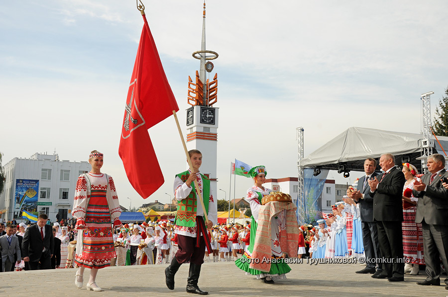 Празднование началось в Кировске: уже в девять утра улицы этого небольшого городка были наполнены людьми и музыкой. Главное событие, которое произошло в честь «Дажынак», очень долгожданное для местных жителей — это открытие Центра досуга, в котором теперь работает новенький современный 3D кинотеатр, небольшое кафе, а также различные кружки для детей (вокальный, танцевальный, театральный и другие). До «Дажынак» выражение «сходить в кино» здесь принимало язвительный оборот, ведь в кино кировчане могли только съездить. Все любители кинематографа отправлялись к нам, в Бобруйск: отдыха с попкорном перед большим экраном ближе, чем наш «Товарищ», было не найти. Но теперь у наших соседей по городу есть собственный «друг-товарищ»: новенький кинозал с 3D экраном на 164 места. Чтобы Центр выглядел достойно и современно, в него вложили 13 миллиардов рублей. Ленточку торжественно перерезали почетные гости: председатель Могилевского облисполкома Петр Рудник, председатель облсовета депутатов Анатолий Исаченко, помощник Президента по Могилевской области Геннадий Лавренков, руководитель Белкоопсоюза Валерий Иванов.