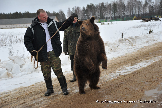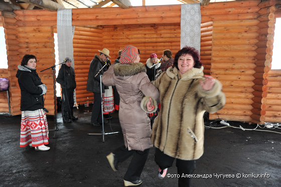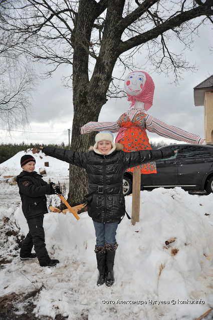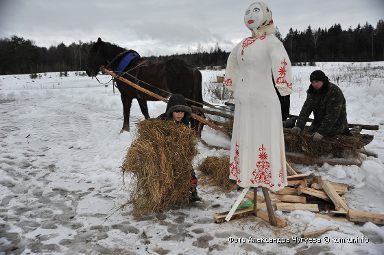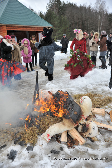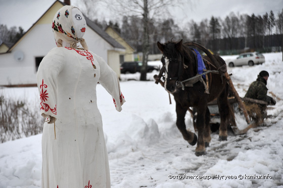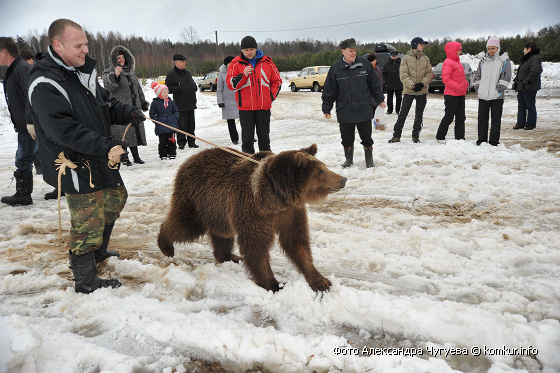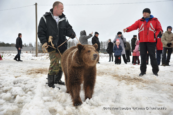 Развлекать посетителей пригласили два вокальных коллектива Гороховского сельского дома культуры — хор и фольклорную группу. Желающие катались на санях, участвовали в спортивных состязаниях, грелись у костра, жгли чучело, лазали на 20-метровый столб за призами и гладили медведицу Марусю, с которой вот так запросто на поводке гулял на свежем воздухе один из зоотехников.