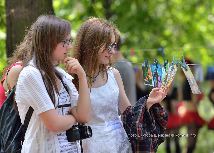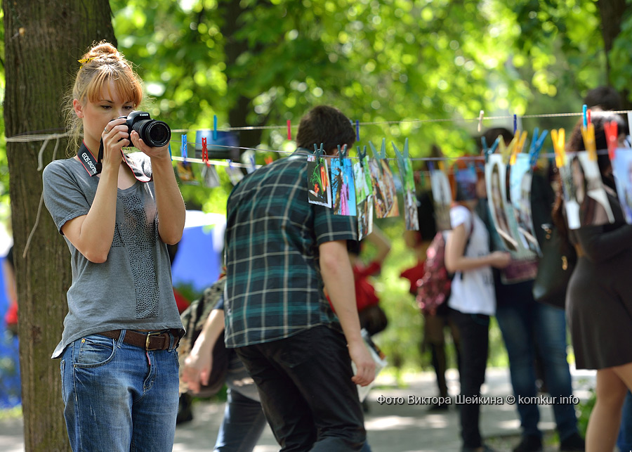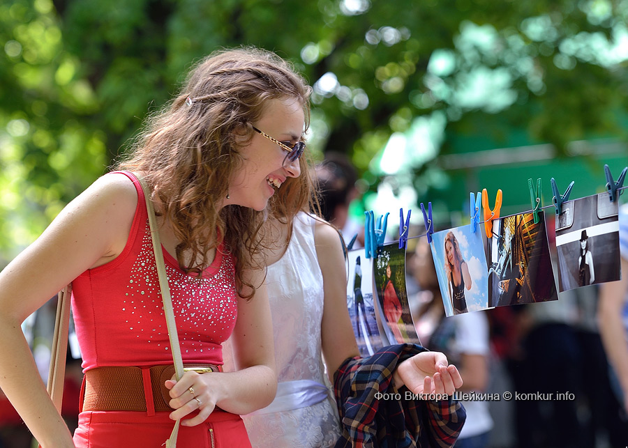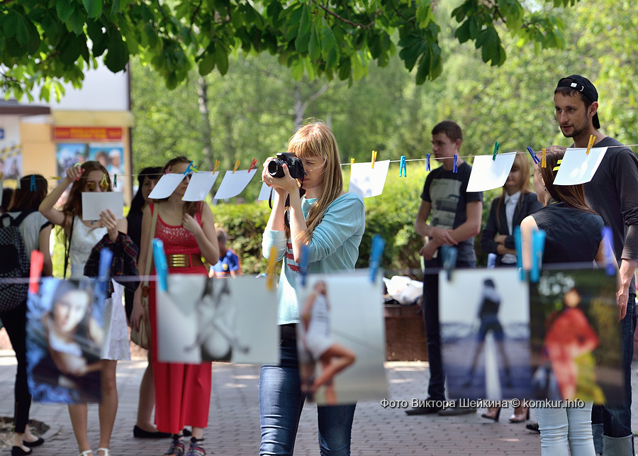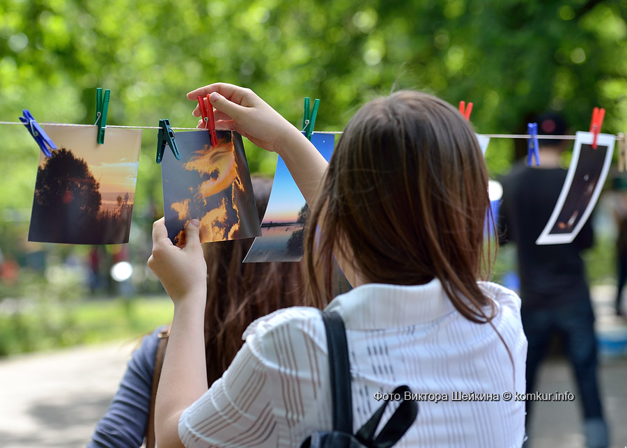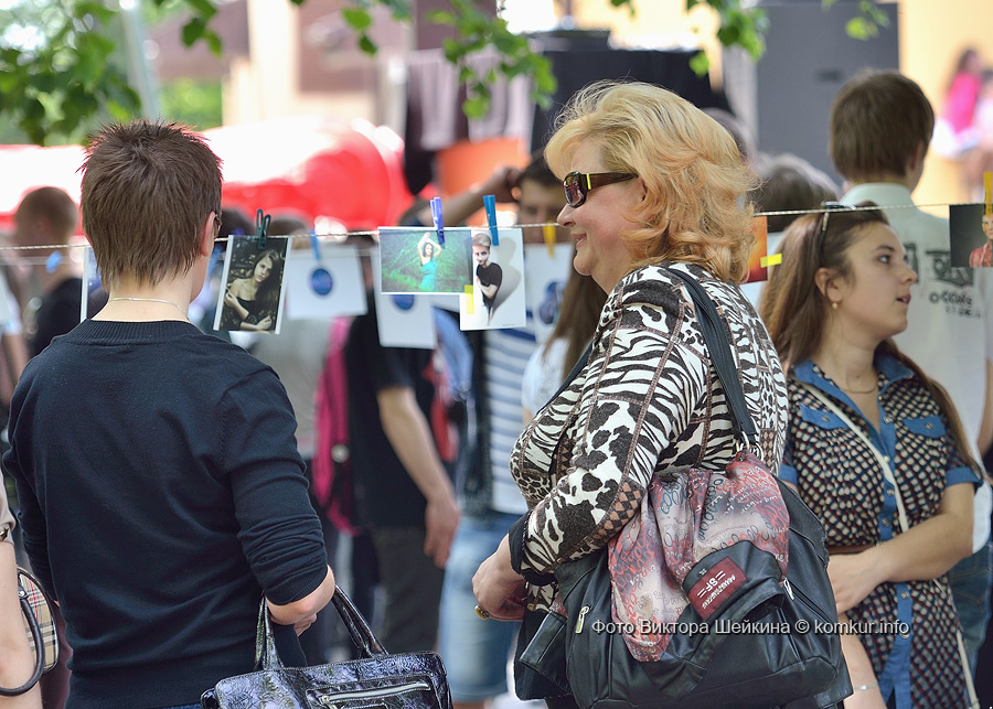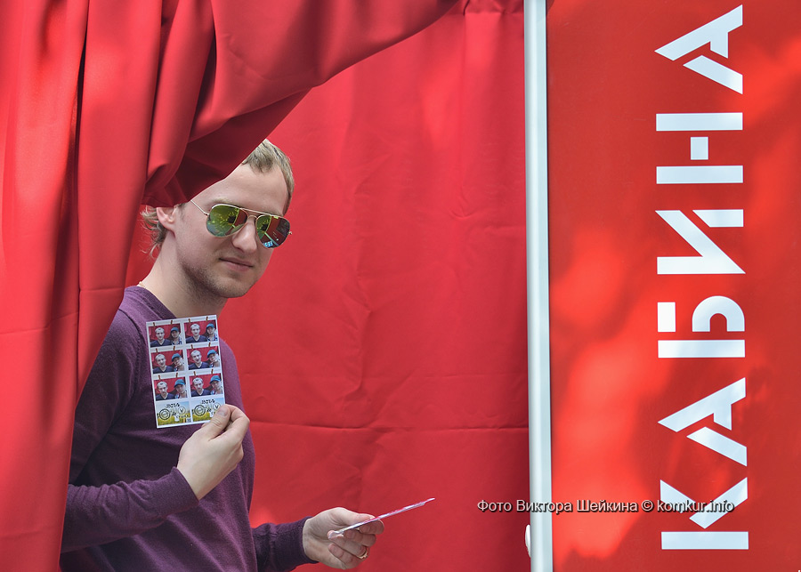 В очередной раз на натянутых недалеко от сцены веревках «сушились» любительские и профессиональные фотографии. Присматриваясь к сюжетам акции «Фотосушка», ненароком ставишь «галочку» — вот такой портрет на фоне голубого неба с белыми облаками и я себе хочу. Рядом с уличной галереей — фотокабина. Из-под шторки только ноги и видно, а внутри — жми кнопку, кривляй рожицы и получай моментальный фотоотчет.