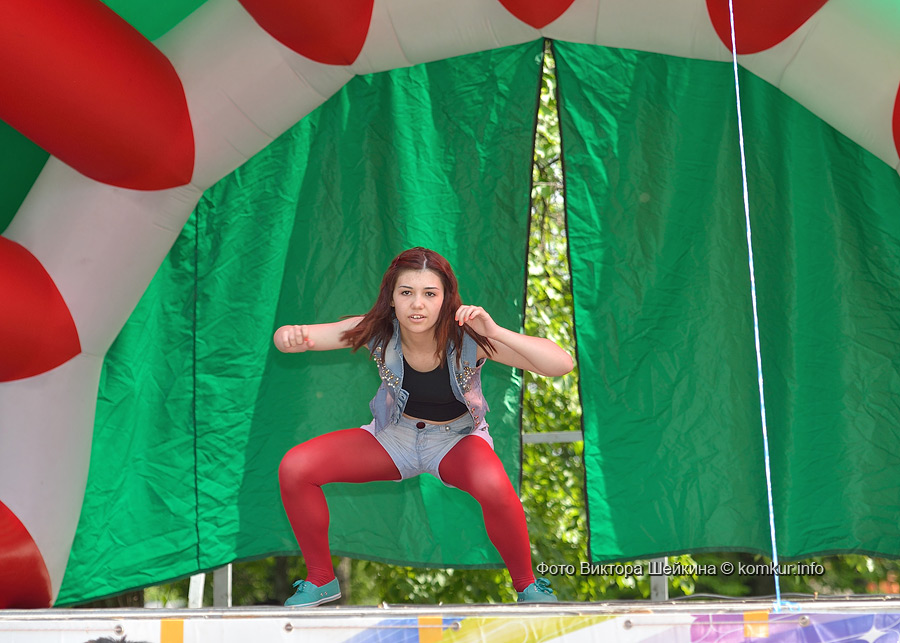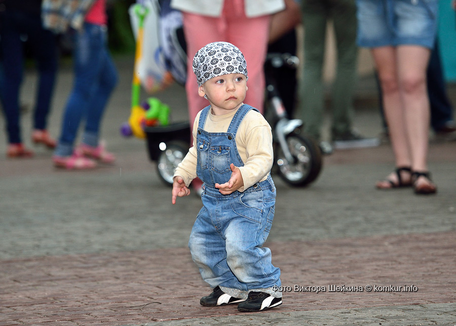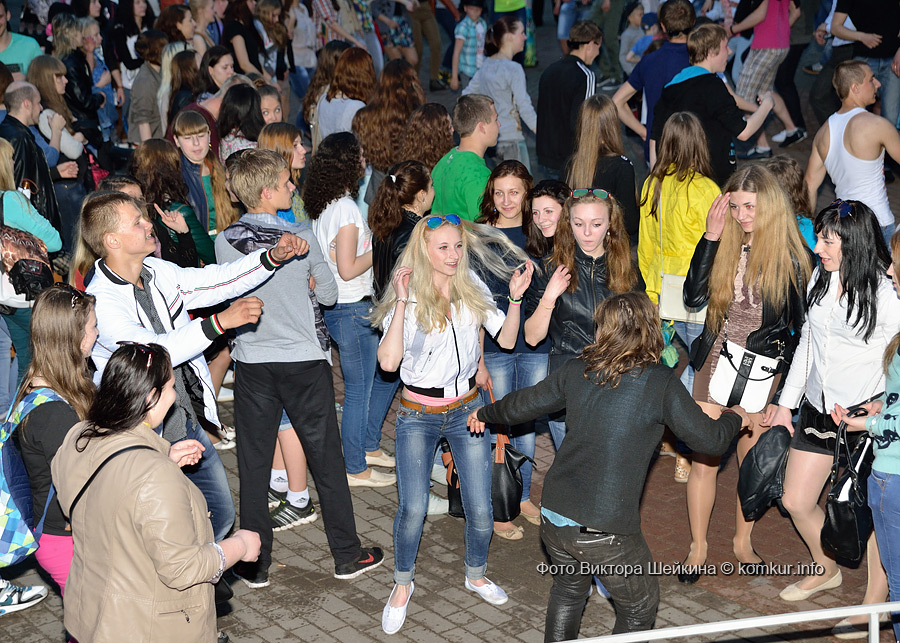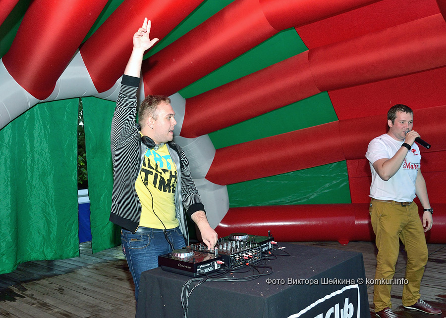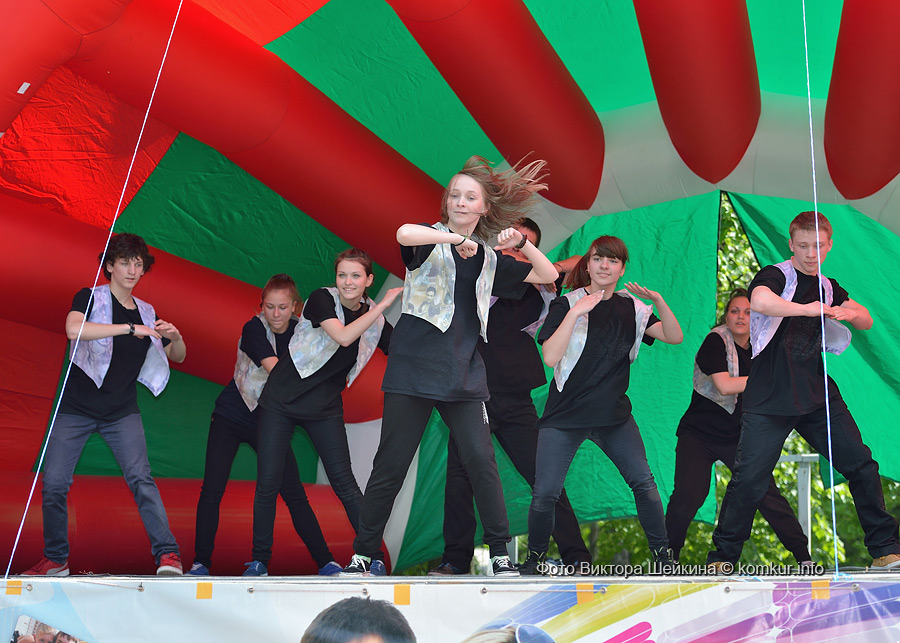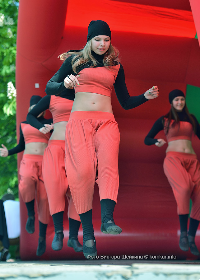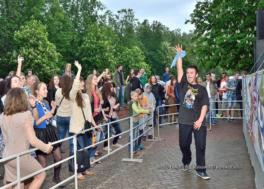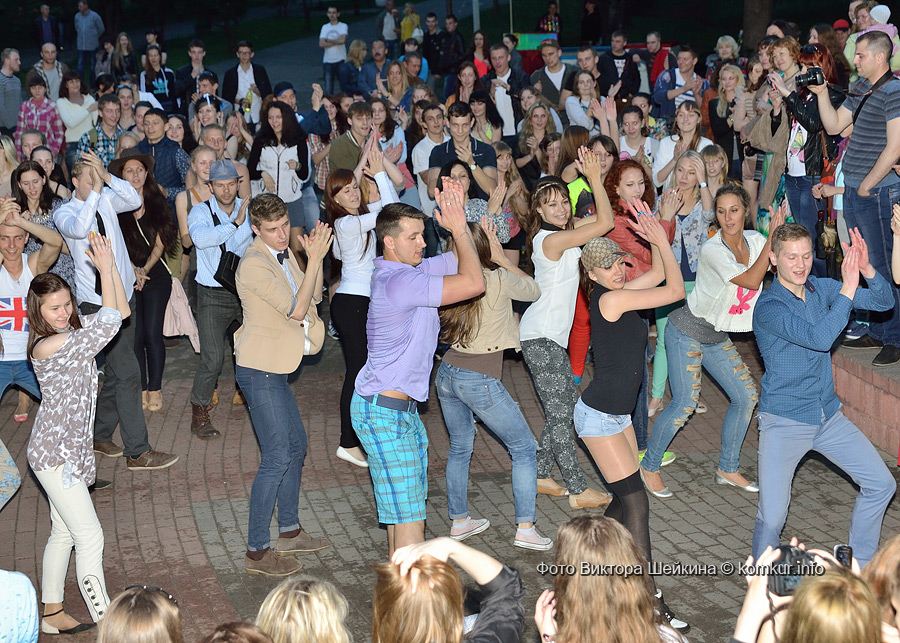 Сгустившиеся тучи и брызнувший дождь распугали не всех. Главная аллея парка опустела, зрители попрятались под козырек кинотеатра, но перед сценой осталось немало стойких и мокрых любителей танцев. Если во время выступлений танцоров и солистов двигались в такт музыки немногие, то сеты от диджеев разбудили самых сонных. Сумбурная танцплощадка постепенно набирала обороты, в центре ребята принялись показывать друг другу танцевальные движения. Первыми обучиться им с удовольствием взялись малыши, за ними подтянулась молодежь — образовав большой круг и повторяя по команде заводилы движения ногами и руками. Плавно это действо переросло в танцевальный флешмоб с заранее отрепетированными движениями.