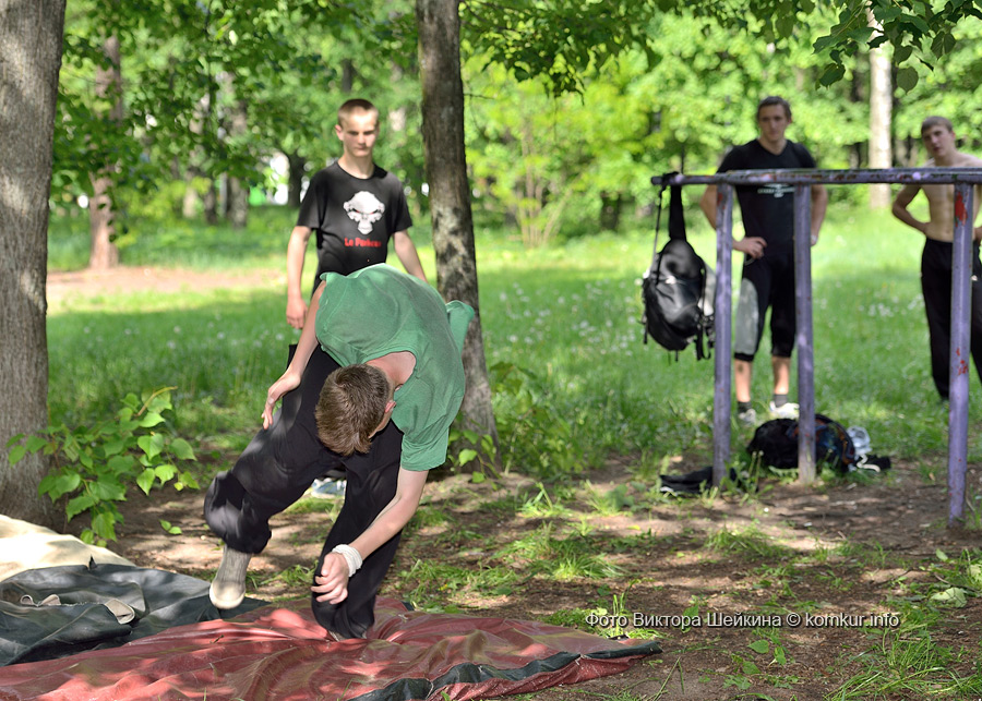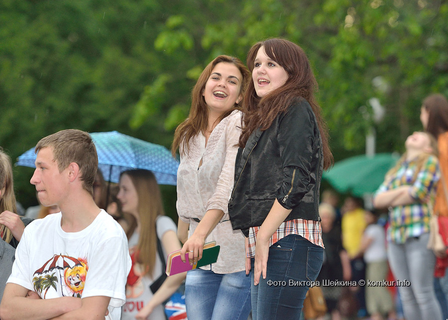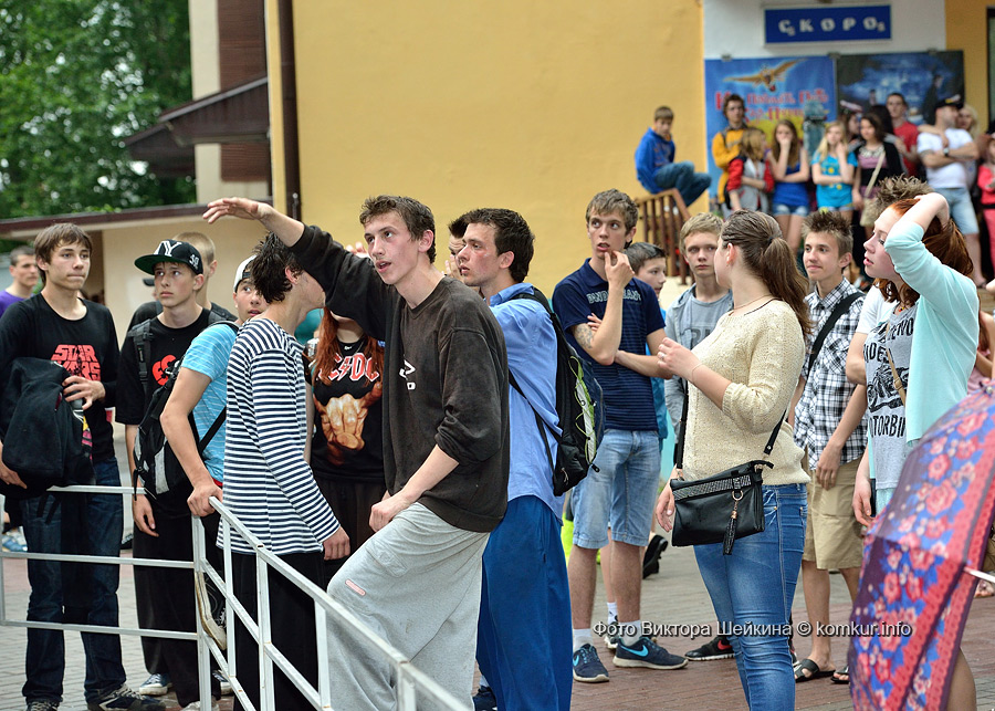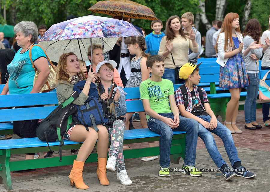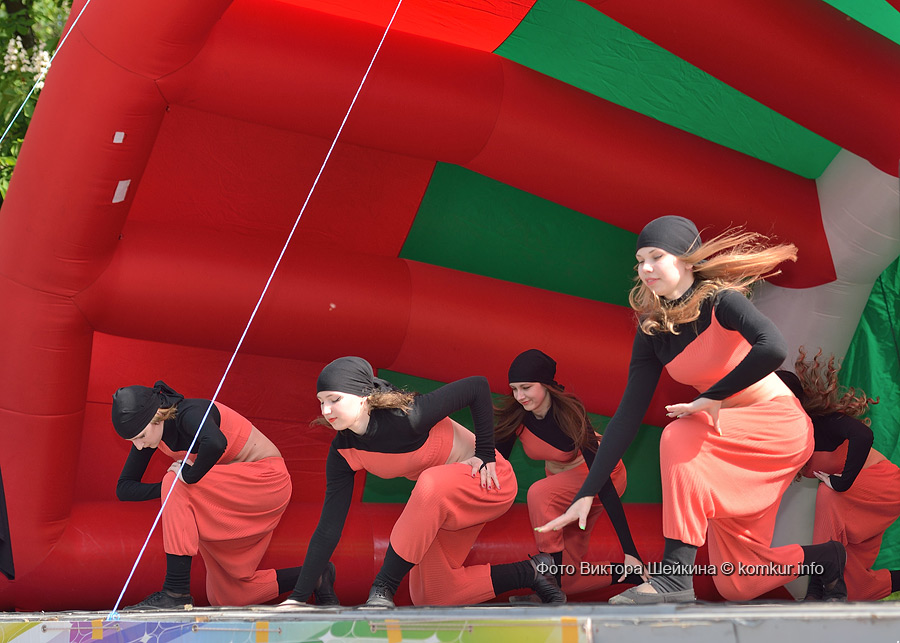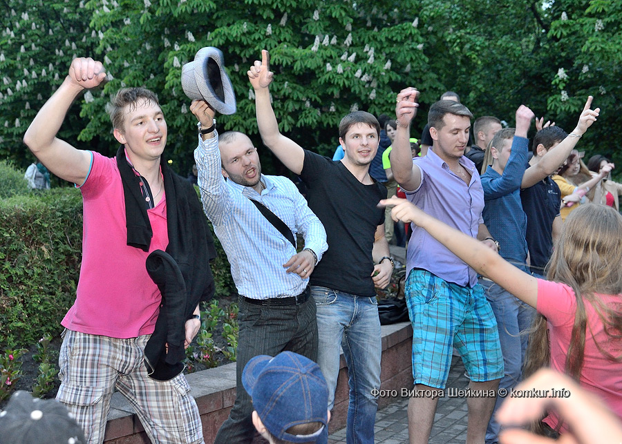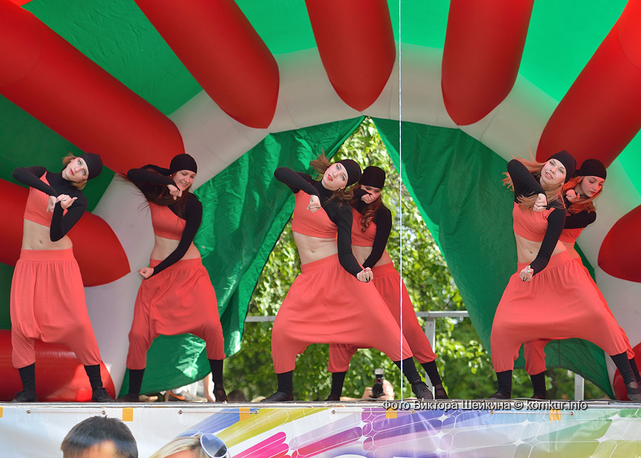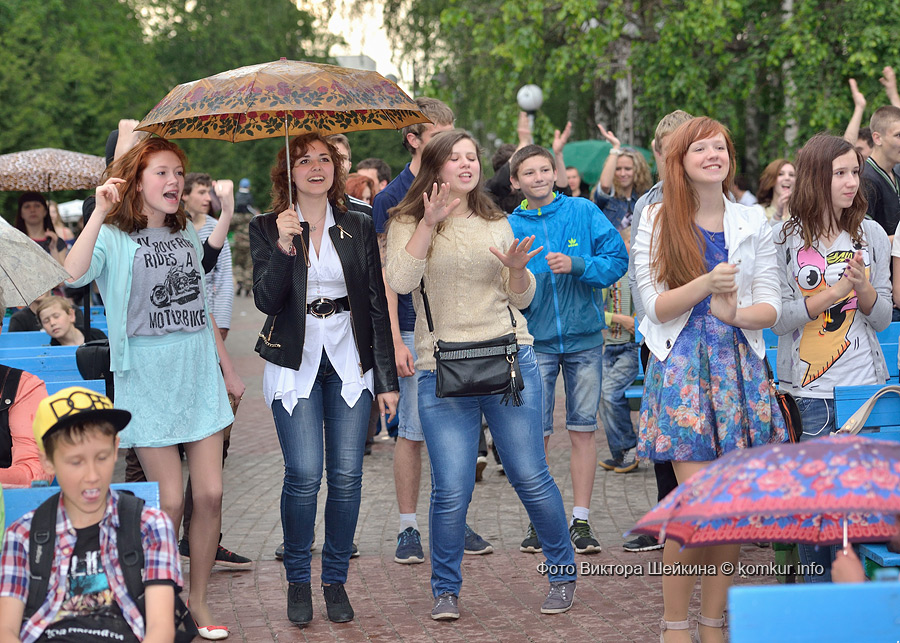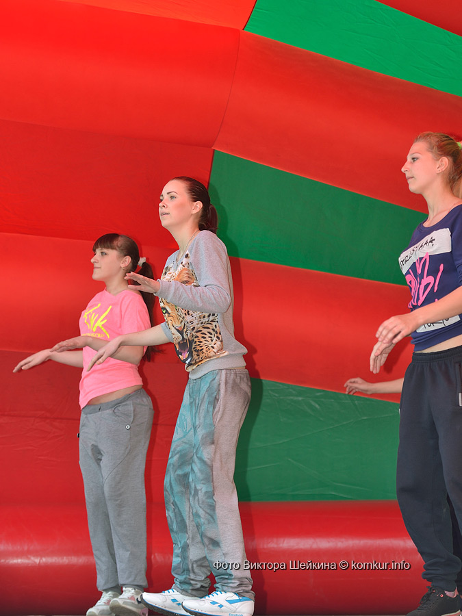 Сгустившиеся тучи и брызнувший дождь распугали не всех. Главная аллея парка опустела, зрители попрятались под козырек кинотеатра, но перед сценой осталось немало стойких и мокрых любителей танцев. Если во время выступлений танцоров и солистов двигались в такт музыки немногие, то сеты от диджеев разбудили самых сонных. Сумбурная танцплощадка постепенно набирала обороты, в центре ребята принялись показывать друг другу танцевальные движения. Первыми обучиться им с удовольствием взялись малыши, за ними подтянулась молодежь — образовав большой круг и повторяя по команде заводилы движения ногами и руками. Плавно это действо переросло в танцевальный флешмоб с заранее отрепетированными движениями.