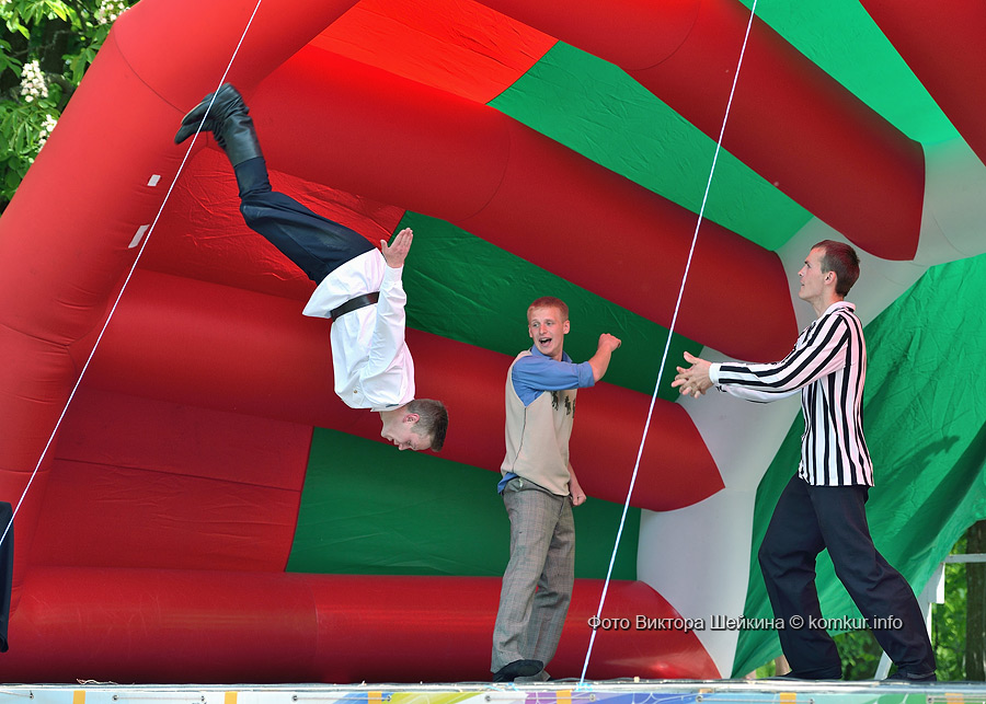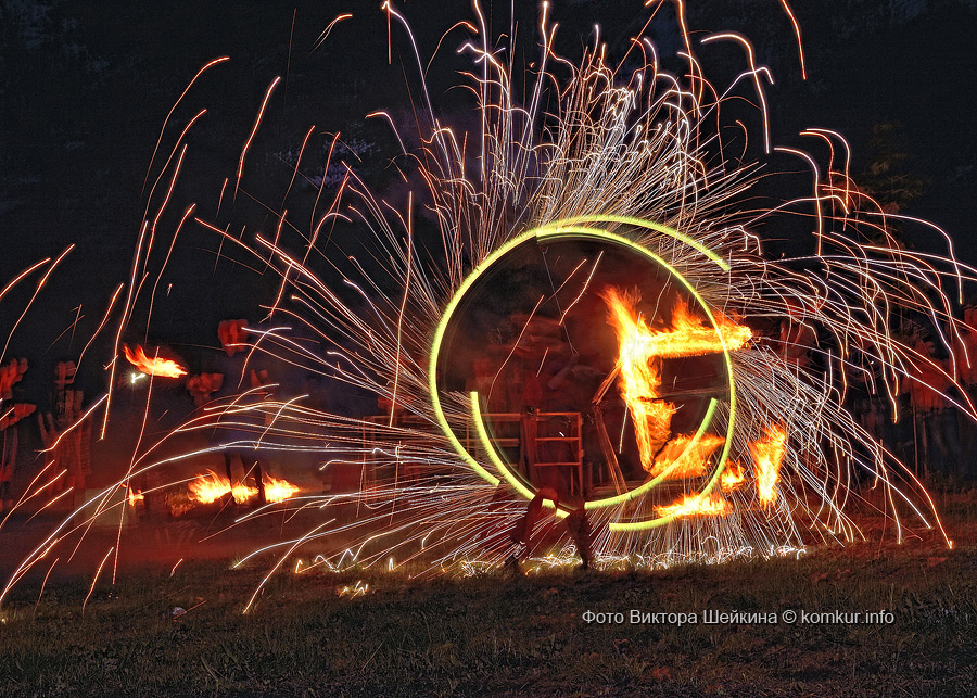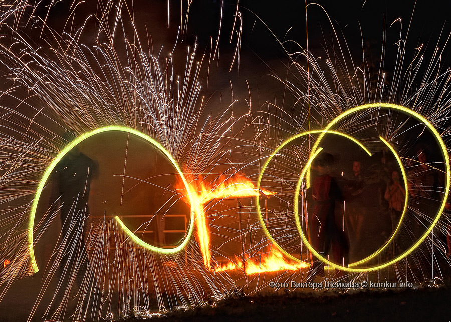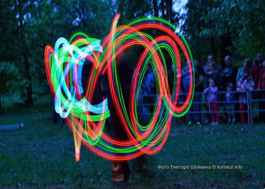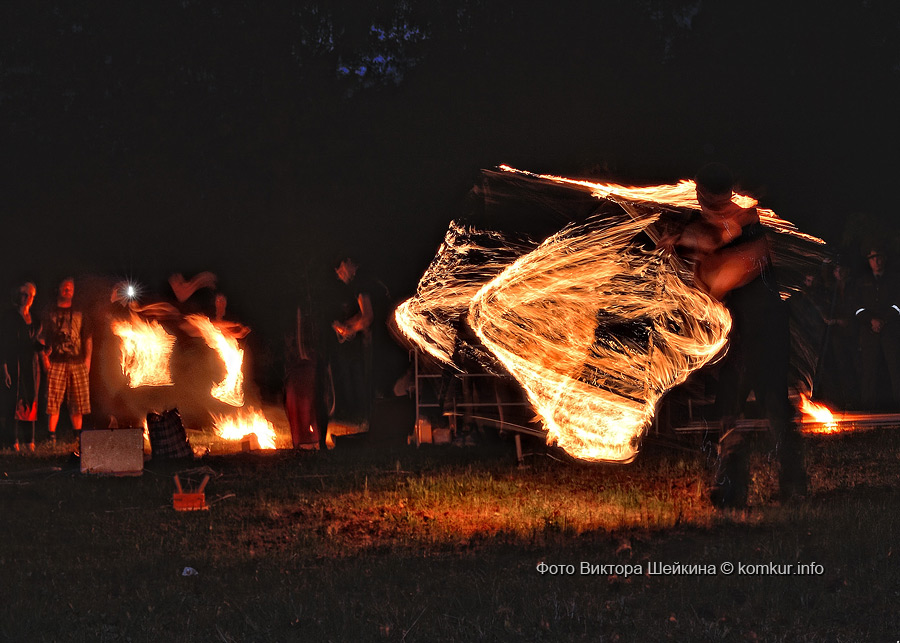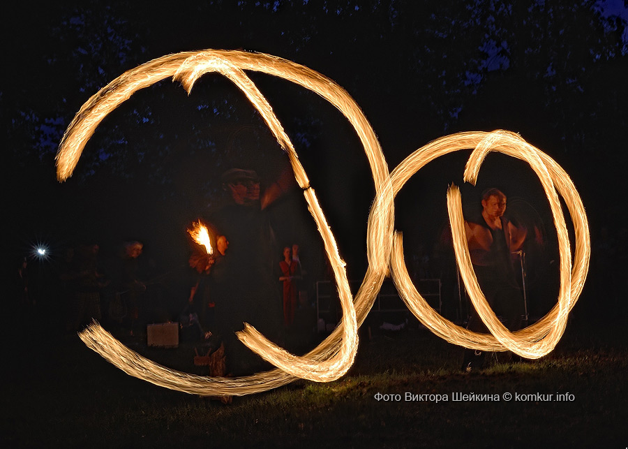 Натанцевавшись (а может, кому-то и не хватило), молодежь, уже в сумерках, двинулась за кинотеатр, где группа «Fenix» представила насыщенное файер-шоу. Мальчишки крутили фонарики, девушки танцевали с огнями в ладонях, крепкие парни жонглировали горящими снарядами и кубом. Из толпы их поддерживали: «Молодец! Красавец!». Кто-то хвастался, что тоже так умеет.