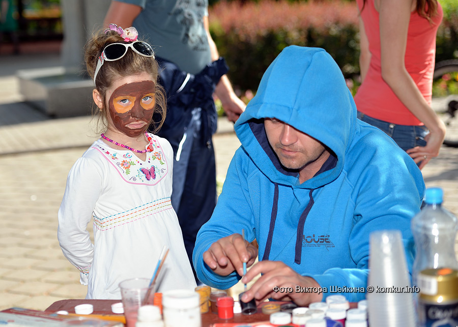 После фотосессии эксперимент на моем лице продолжился. В итоге я весь день ходила с причудливым узором на щеке. Забывая о рисунке, я удивлялась — почему меня рассматривают прохожие, а знакомые напоминали о нем — кто комплиментами, кто критикой. Такие же разрисованные отдыхающие на аллеях парка не были редкостью. В семье Вячеслава и Натальи Потапкиных, например, рисунок на память сделали обе дочки — Маргарита и Даша, а еще — друг Даши Стас.
