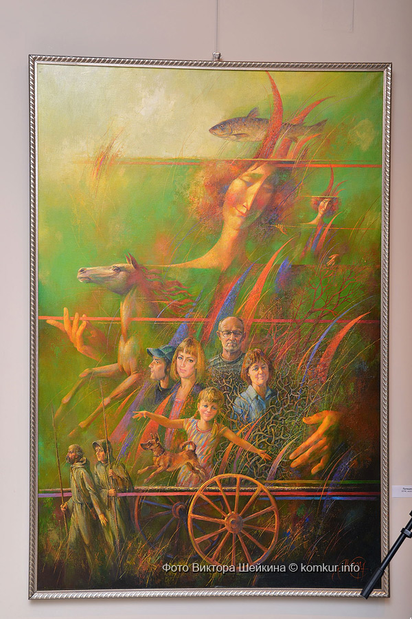 В картине «Путешествие» узнается сам автор. Его окружают родные люди. Наверное, это путешествие по жизни, но каждый зритель этого застывшего момента вложит в него свой смысл.