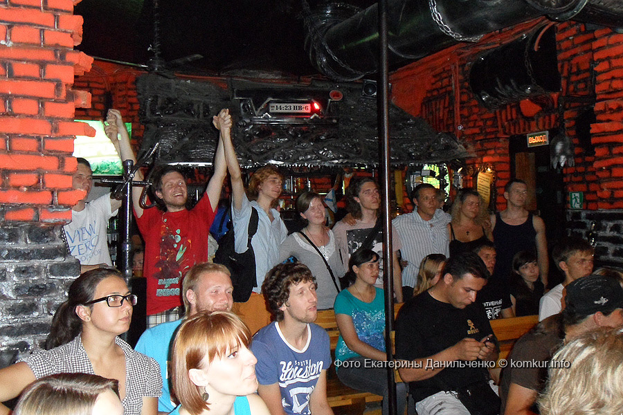 В среду, 10 июля, в баре «Кочевник» раздавали конфеты, ели одно мороженое на пятьдесят человек, кричали «Да, у меня есть борода!» и «Чик-чирик»… А еще там выступали самые настоящие чернявые бородатые итальянцы!