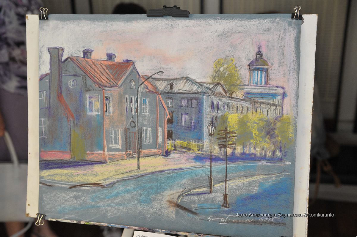 Впрочем, здесь была представлена и работа, легко узнаваемая всеми жителями города. Это рисунок старого особняка по улице Пролетарской, работу над пастелью художник завершил накануне, и в день открытия она уже встречала бобруйчан в фойе.