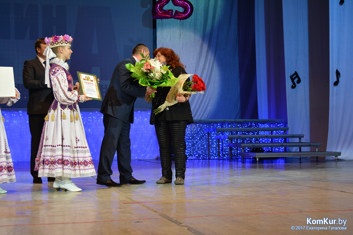 С юбилеем коллектив поздравили представители власти Могилева и Бобруйска, профсоюза работников культуры, директор Дворца искусств. Они вручили почетные грамоты, благодарственные письма и денежные премии Алле и Валерию Ефименко, заведующему музыкально-техническим отделом Дворца искусств Юрию Шкадровичу, который 25 лет обеспечивает звук на концертах «Шина-ная».