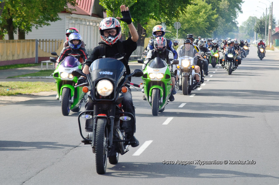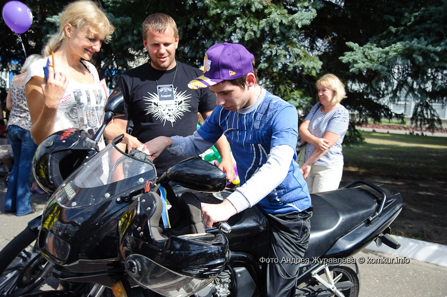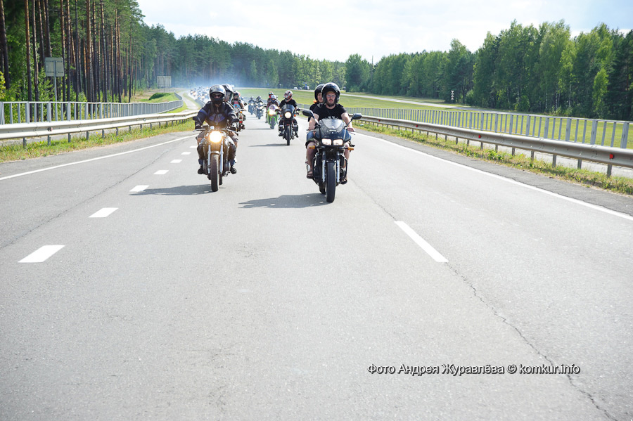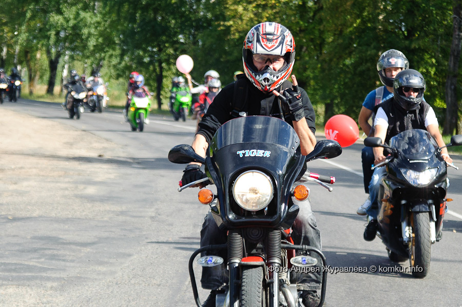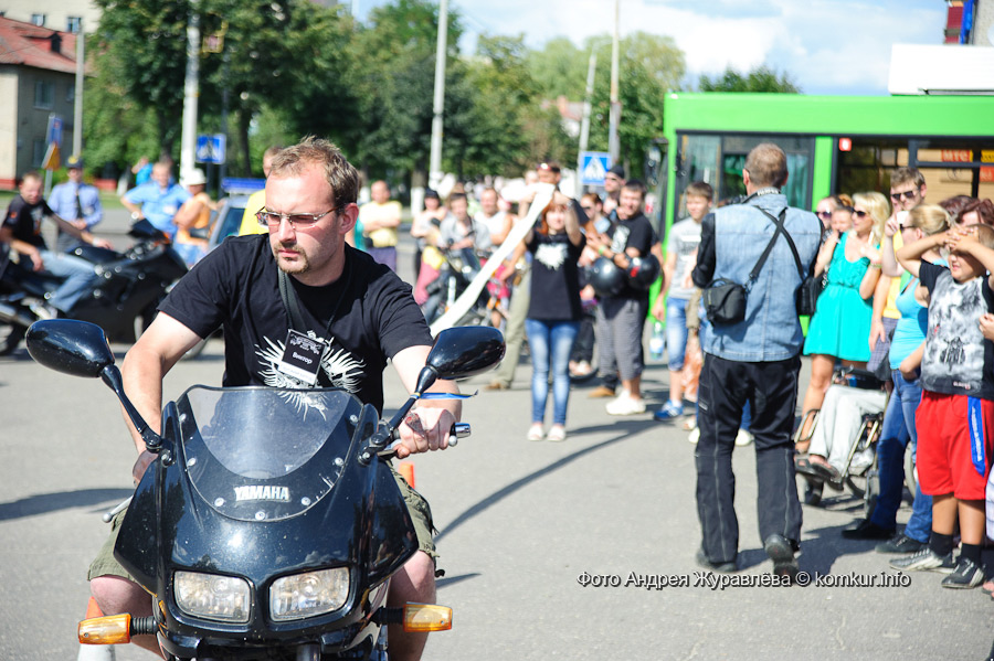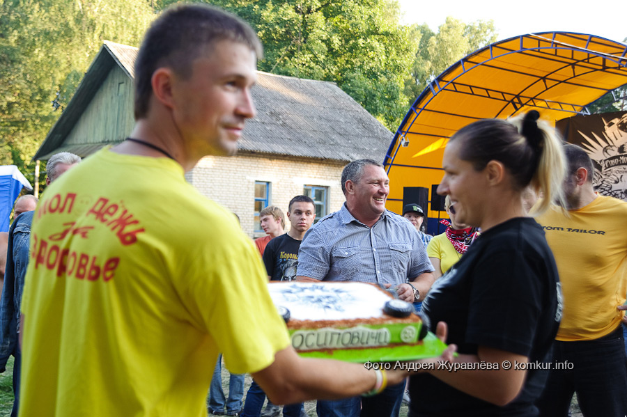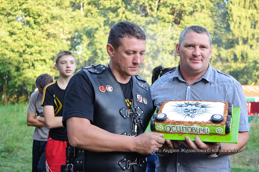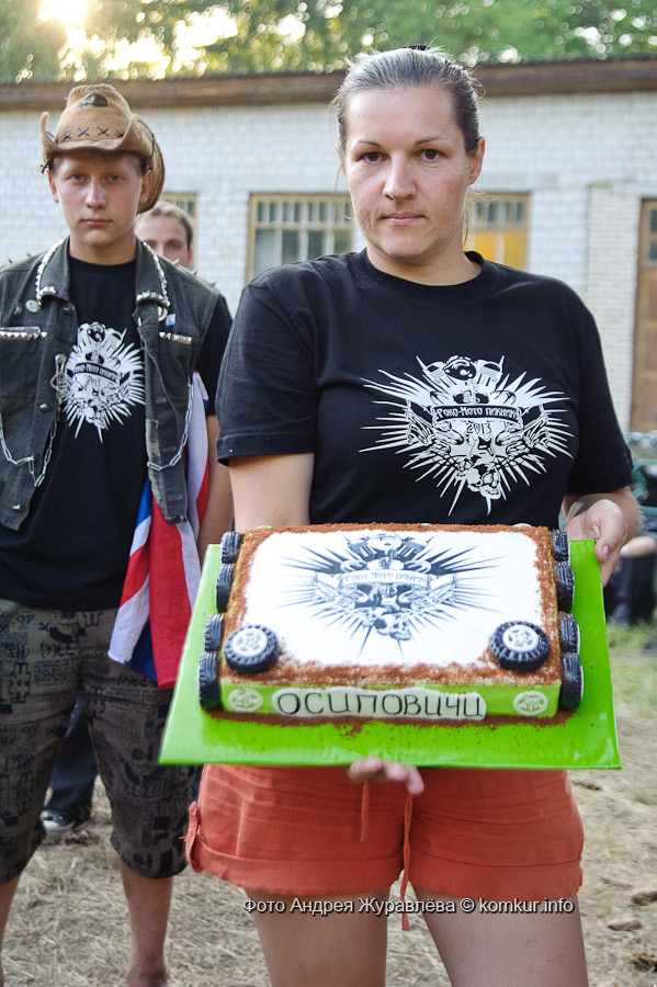 А чего стоил аукцион по продаже торта с эмблемой пикника! Вырученные деньги были перечислены на счет детского дома. «300000», — кричал ведущий. Потом — «400000», затем — «500000». В итоге обладателями торта стали Сергей Бонохов и Андрей Сушков. Каждый за свою половину отдал 500 тысяч. Итого — миллион. Сам торт был тут же разделен между участниками праздника. Не обделили байкеры своим вниманием и самих малышей. Во время мотопарада и посещения центральной площади Осиповичей Никите Калистратову из детского дома для детей с ограниченными возможностями больше всех понравился байк «Yamaha Fazer», и уже через минуту он восседал на нем и восторженно держался за руль. А потом еще и проехал. С помощью взрослых, разумеется.