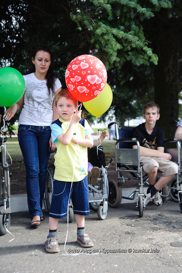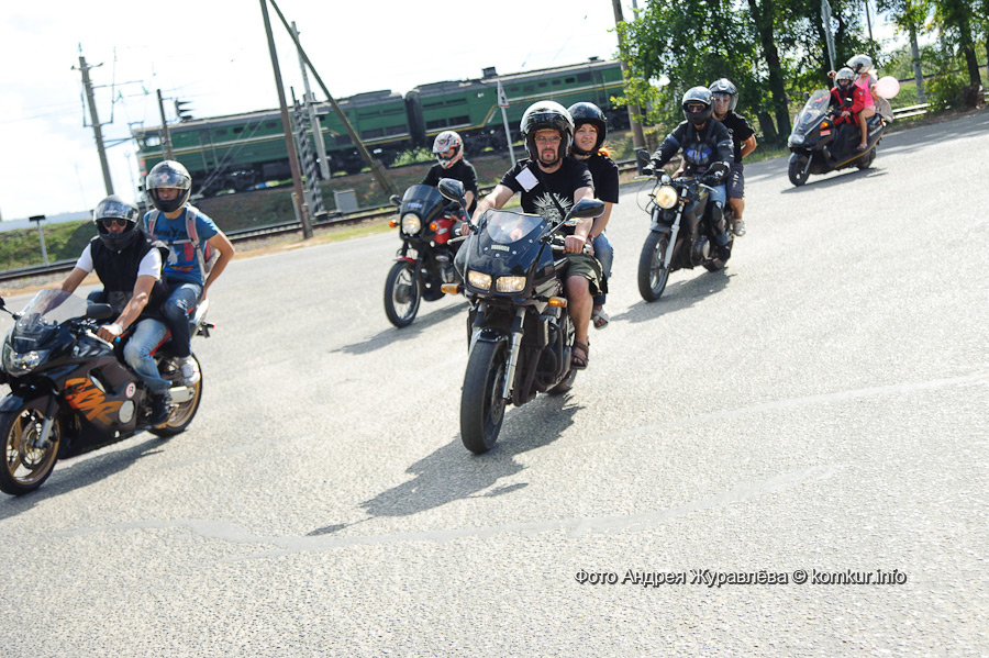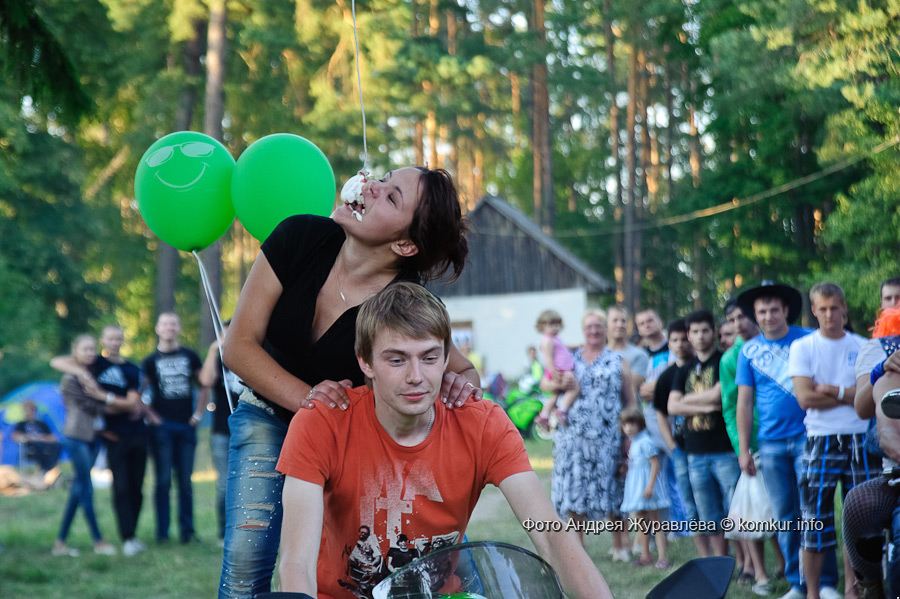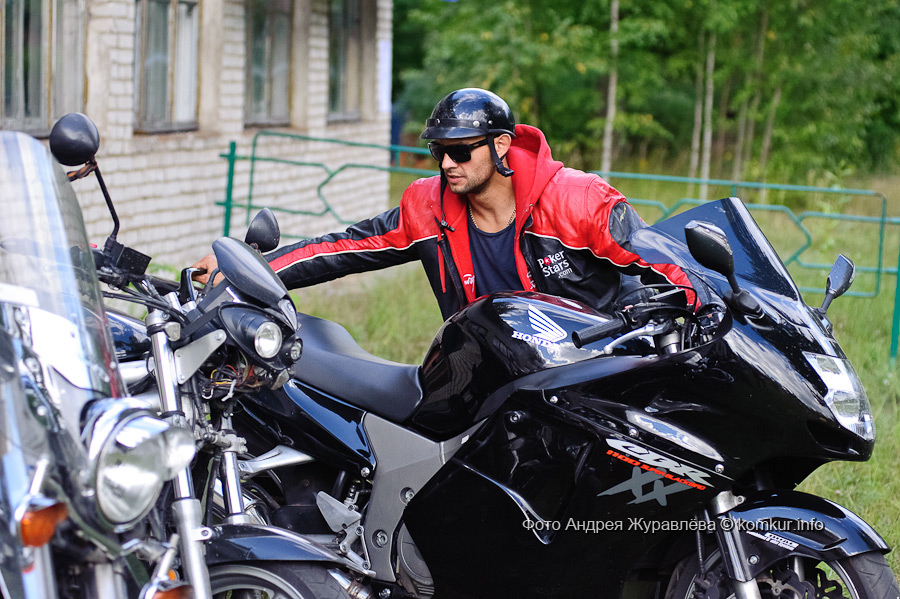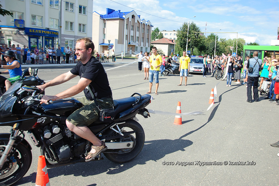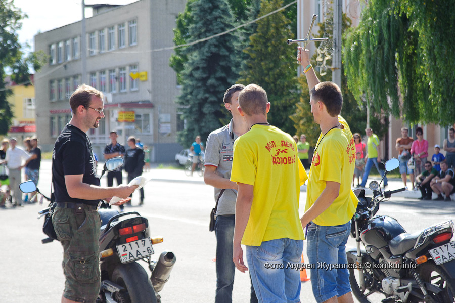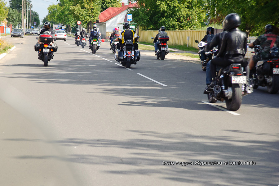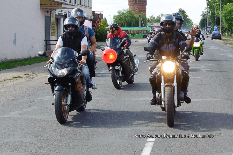 А чего стоил аукцион по продаже торта с эмблемой пикника! Вырученные деньги были перечислены на счет детского дома. «300000», — кричал ведущий. Потом — «400000», затем — «500000». В итоге обладателями торта стали Сергей Бонохов и Андрей Сушков. Каждый за свою половину отдал 500 тысяч. Итого — миллион. Сам торт был тут же разделен между участниками праздника. Не обделили байкеры своим вниманием и самих малышей. Во время мотопарада и посещения центральной площади Осиповичей Никите Калистратову из детского дома для детей с ограниченными возможностями больше всех понравился байк «Yamaha Fazer», и уже через минуту он восседал на нем и восторженно держался за руль. А потом еще и проехал. С помощью взрослых, разумеется.