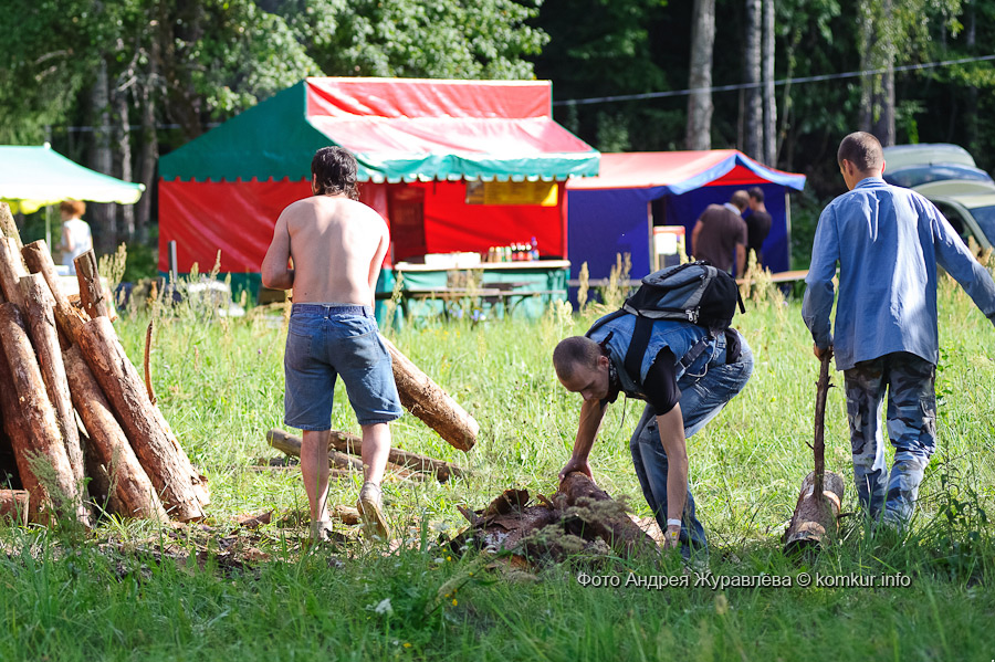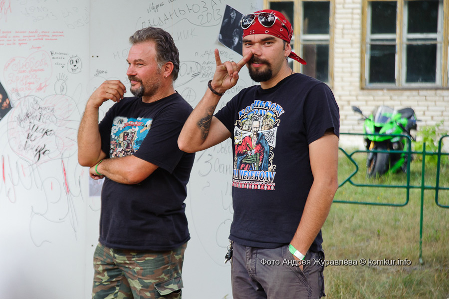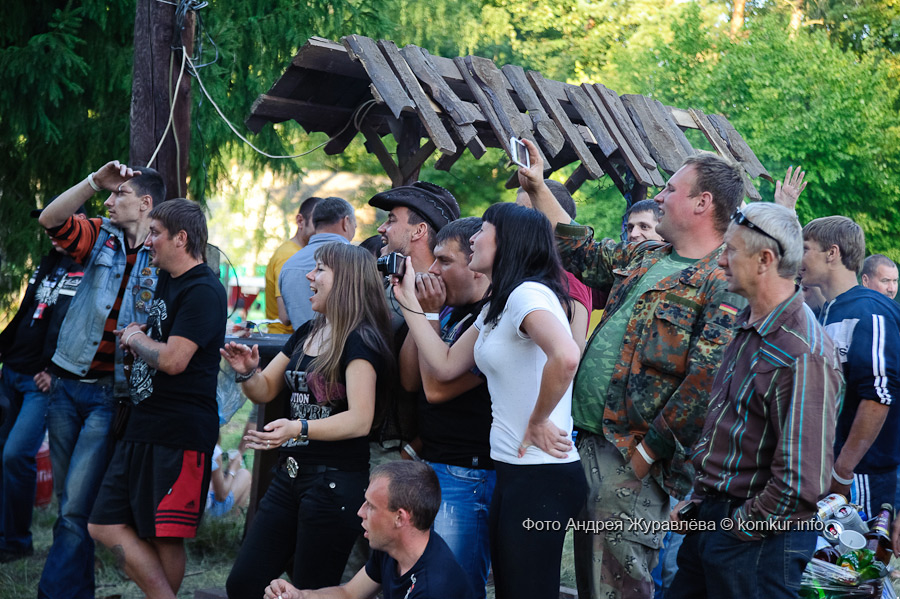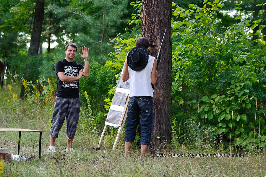 Впервые побывавшие в Беларуси Александр Силко и Сергей Семисал из Украины рассказали, что несмотря на четырехчасовой простой на таможне, они очень рады присутствовать здесь. Разве что «денежные котлеты» (как они называют увесистые пачки белорусских банкнот) доставляют неудобства. Федор Азимов и Дмитрий Грачев из наших Житковичей также очень довольны, ведь на последнем их фестивале в Бресте дождь шел двое суток, а здесь погода как на заказ.