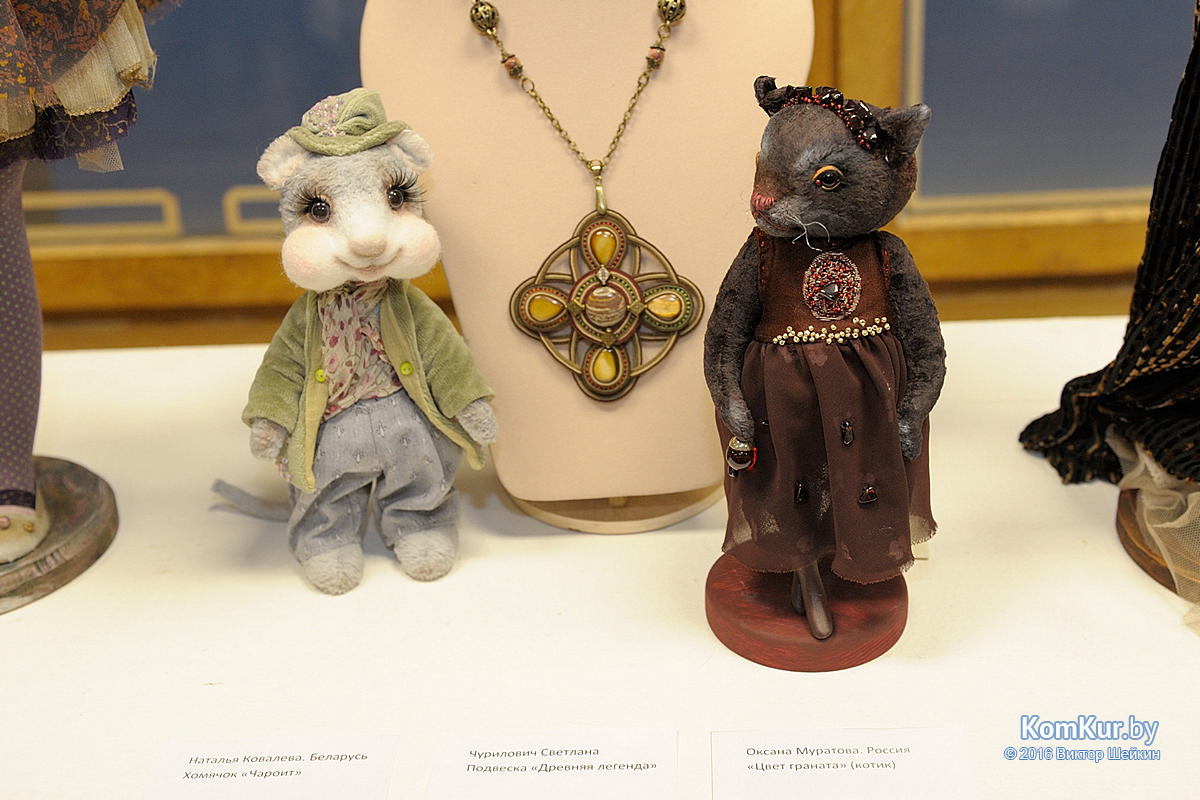 «Веселин драгоценный», «Висхар – мудрый и очень добрый», «Мудрый гном», «Гранат», «Чароит», «Александрит», «Аметист», «Оникс», «Турмалин», «Ведьма и сапфир», «Хранитель сундука», медведь по имени «Жемчужина». На главном подиуме экспозиции этих шикарных кукол, украшений и масок – «Хозяйка Малахитовой шкатулки», изготовленная вдохновителем и организатором кукольного творчества в Беларуси Надеждой Цигановской. Благодаря этой обаятельной молодой женщине, мастеру международного класса, об уровне мастерства отечественных кукольников известно далеко за пределами Беларуси. Представители европейских ювелирных торговых домов выразили желание выставить для показа некоторые из этих работ в своих странах.