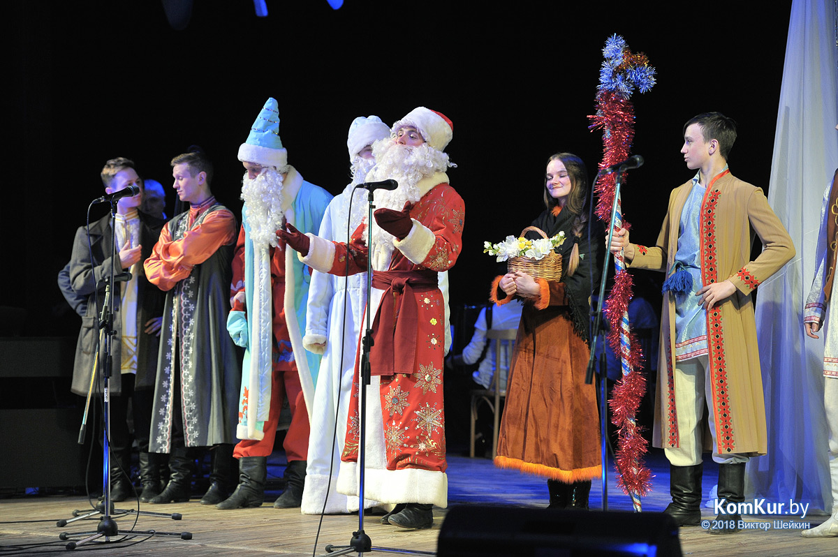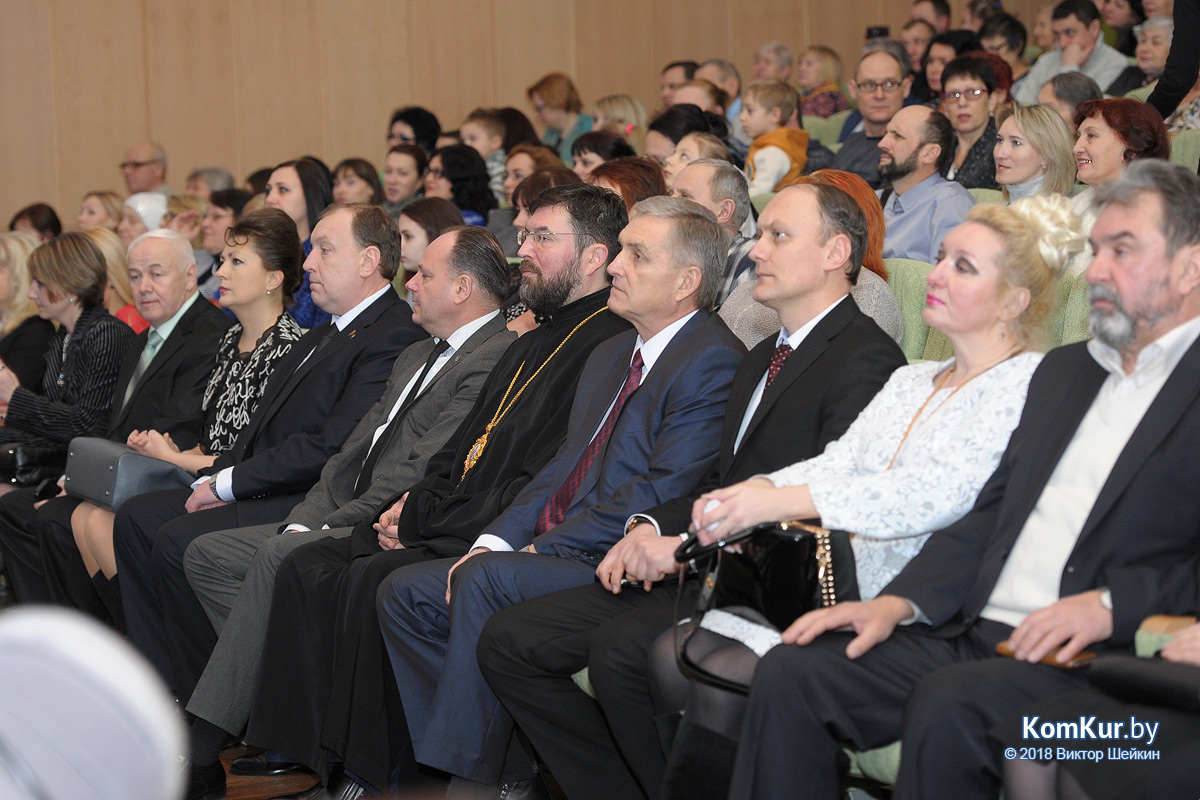 Поздравили всех присутствующих с Рождеством и пожелали удачи и свершения задуманного в наступившем году первый заместитель председателя Бобруйского горисполкома Олег Валериевич Ковель, председатель Бобруйского городского Совета депутатов Михаил Викторович Желудов, епископ Бобруйский и Быховский Серафим. Они вручили благодарности за популяризацию национальной культуры и искусства, активное участие в проведении республиканской акции «Культурная столица года» объявлена благодарность Бобруйского городского исполнительного комитета с вручением памятной медали «Культурная столица Беларуси 2017»: