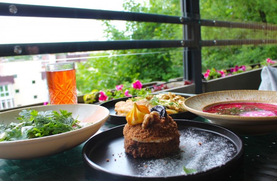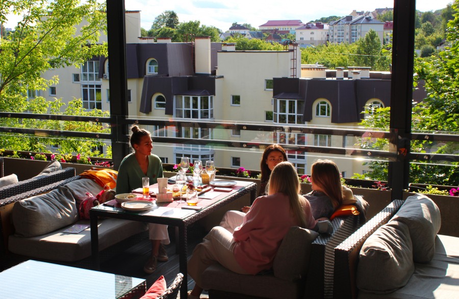 Насладиться радостями лета в «Цоколе» позволяет и открытая терраса с прекрасным видом на Могилев: пенье птиц, приглушенный городской гул, солнечные лучи, пробиваясь сквозь листву, наполнили обеденный зал теплом и светом – захотелось отложить все самые важные дела и получать наслаждение от всего, что происходит вокруг: от долгожданного лета, от красивого вида родного города, от вкусной еды, от уютного диванчика, от приятной неспешной беседы …