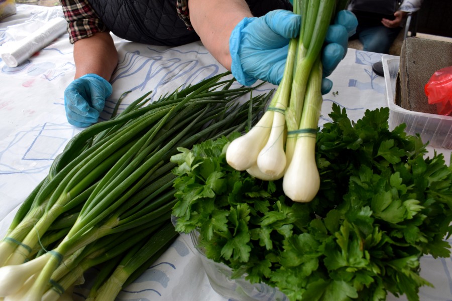 Зелень со своих огородов у тех, кто растит в «промышленных масштабах», продается на развес и стоит поначалу аховые 30 рублей за кило. «У бабок за пучок дороже выйдет», – говорит продавец, показывает пучище петрушки, что завесил на 8 рублей – и покупательница соглашается. Особенно, когда ей уступают за 7. А та же огородная зелень, где понемножку и пучками – 1,50 за пучок, «у нас 15 лет такие цены, два пучка отдам за 2 рубля».