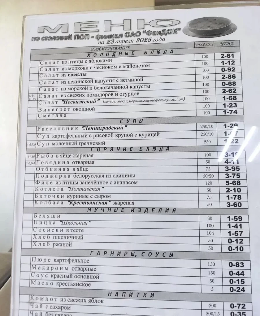 А начинаем со столовой ОАО «ФанДОК». Адрес: Бобруйск, ул. Ленина, 97.