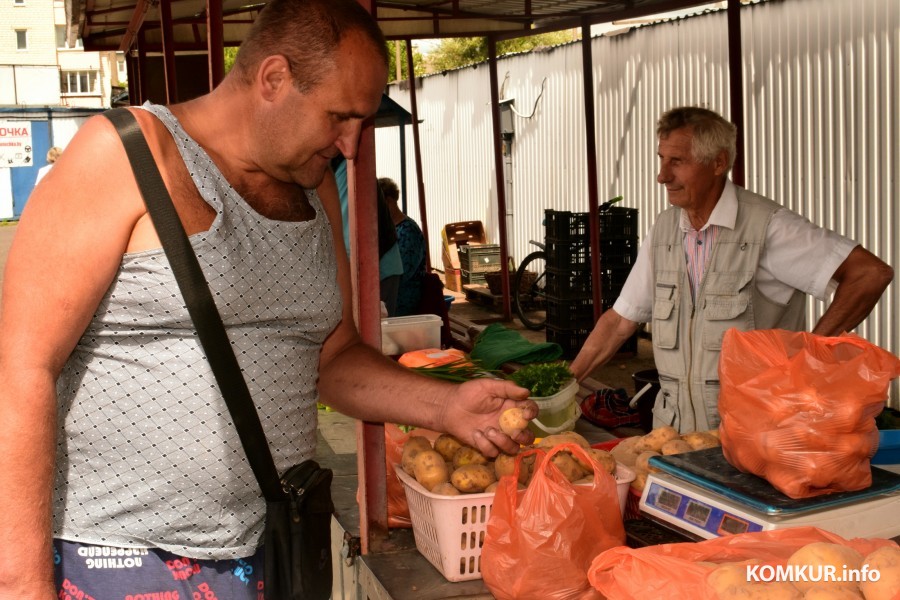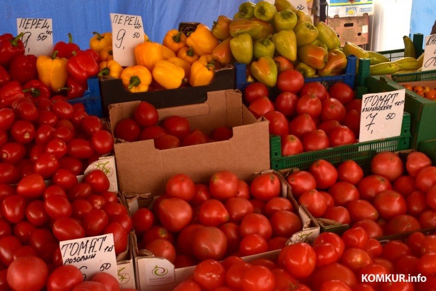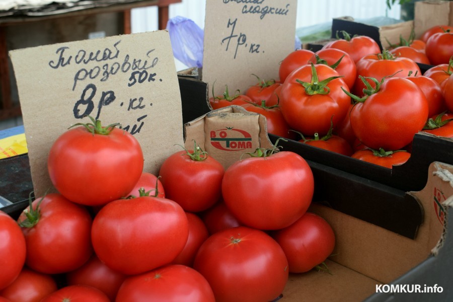 Бульбу предлагают от гигантской до «гороха», обычная цена – 2,50-4 рубля за кило, но можно рассмотреть и за 1,50. Огурцы – 2,50-3 (это самые частые цены для разных товаров), помидоры от 5 (за маленькие, которые должны быть большими) до 8,50 за большие или «по закону» маленькие.