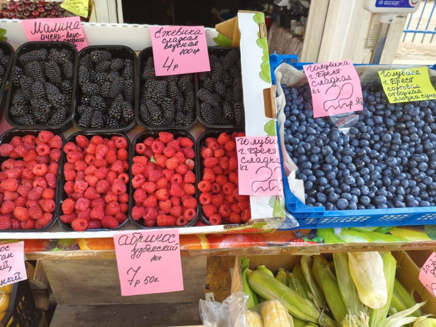 В конце рабочей недели на рынке по улице Островского в Могилеве немноголюдно – ни толкотни тебе, ни очередей. Как только подходишь к лотку с товаром, продавец настоятельно рекомендует что-то купить. А выбрать есть из чего, правда, цены «кусачие», если говорить про ягоды.
