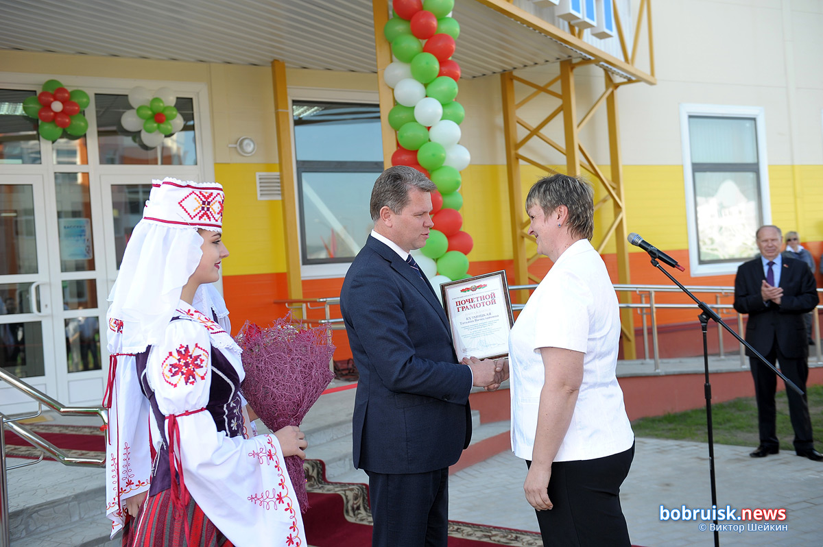 На открытие приехали: председатель горисполкома А. В. Студнев, председатель горсовета депутатов М. В. Желудов, заместитель председателя горисполкома И. Н. Кисель, глава администрации Первомайского района Ю. С. Хилинский, начальник управления по образованию горисполкома В. А. Омелюсик. Очень символично, что на это открытие прибыли председатель Союза строителей Республики Беларусь Н. Ф. Шеремет и 11-кратный паралимпийский чемпион, многократный чемпион мира и Европы И. А. Бокий. Но главными гостями стали, конечно, строители во главе с А. Э. Боким – генеральным директором ОАО «Строительный трест №13» – организации, построившей всю эту красоту.