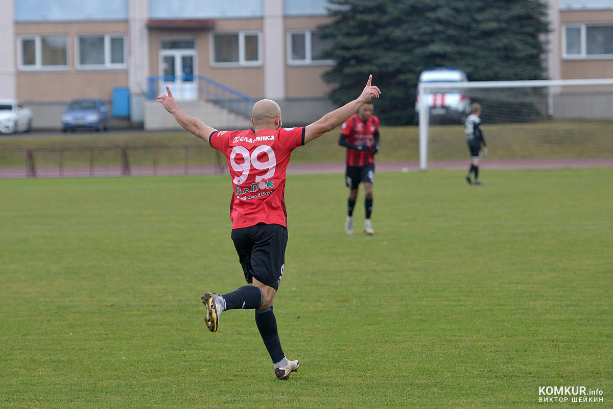 Хозяева союзно решили взяться за дело всерьез и сразу. Уже на 7-й минуте фронтмен атак шинников Исаев открыл счет. На 20-й и 23-й минутах почин партнера двойным попаданием поддержал Чесноков. Гол лидчан, забитый на 32-й минуте, разохотившиеся бобруйчане словно и не заметили: еще до перерыва Исаев еще разок пробил гостевого голкипера, а спустя четыре минуты после перерыва Васильев сделал разницу в счете гигантской – 5:1. Для того, чтобы превратить ее в ужасающую, хватало и времени, и моментов, но… До конца матча на поле воцарилось настроение ожидания финального свистка – его жаждали обе стороны, пусть и по полярно противоположным причинам. Когда судья дал сигнал об окончании встречи, счастливые болельщики гурьбой высыпали на поле – для братания со своими любимцами.