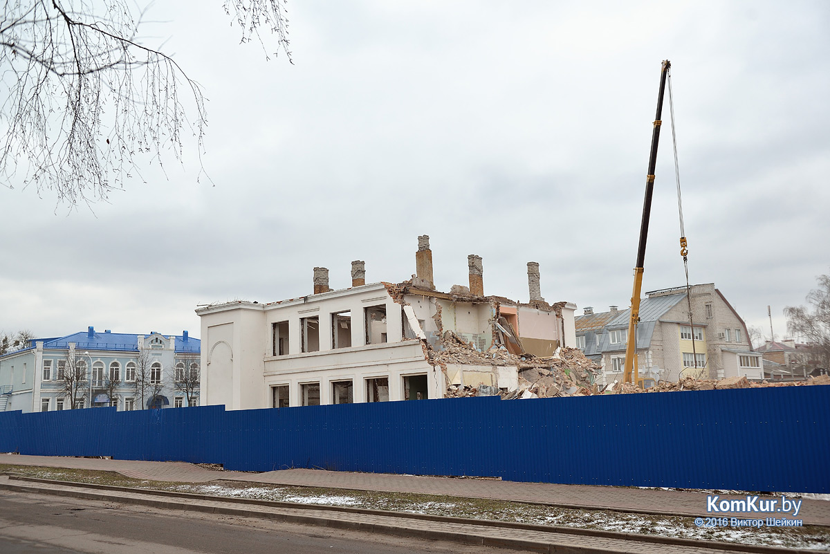 – Речь идет не о сносе здания, а о его реконструкции. Действительно, здесь будет наш новый офис. Старое помещение на улице Пролетарской давно исчерпало себя. Любой бобруйчанин, кто регистрировал там сделки, думаю, со мной согласится. Нашему зданию в прошлом году исполнилось 100 лет. Много чего и кого повидало оно на своем веку: и конюшня тут была, и школа…