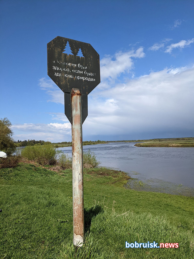 …На правом берегу реки в черте города обращают на себя внимание очень старые и очень основательные щиты, установленные на не менее основательных столбах. Может, это природоохранная агитация? В щите на Луковой горе пробит силуэт рыбы, на тех, что рядом с Форштадтом и на центральном пляже, — три уточки, на пересечении ул. Речной и 1‑го Мозырского переулка — щит с елочками. Это не обозначение пляжей, не навигационные знаки — было бы интересно узнать, что это за реликты советской эпохи. Если вам, уважаемый читатель, известно — сообщите и нам.