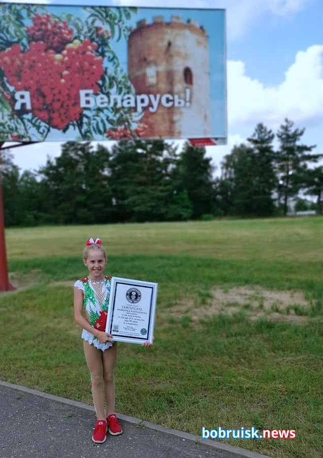 Девятилетняя Доминика Пантелеева, солистка образцового ансамбля эстрадно-спортивного танца «Мечта», воспитанница школы гимнастики и акробатики Ренаты Колодинской стала первым и единственным ребенком из Бобруйска, чей рекорд официально зарегистрирован как мировой.