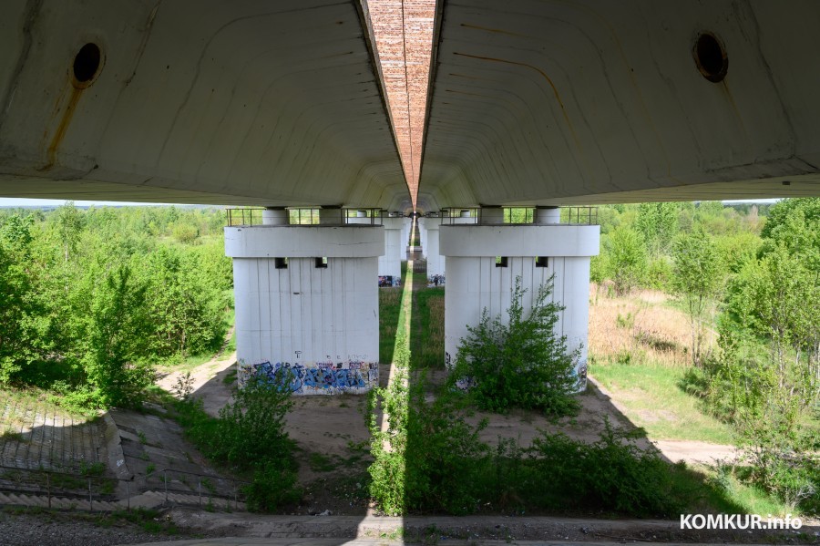 Наш мост, собран из семи таких строений, средняя длина каждого – чуть более 60 метров. На одном из них замечаю заводской штамп с серпом и молотом. Кто знает, возможно, это последний мостовой короб, made in USSR. Куда более свежие находки валяются под ногами. Пустые упаковки от чипсов, пластиковые «двушки» из-под пива, пакеты… А здесь точно «посторонним В»?