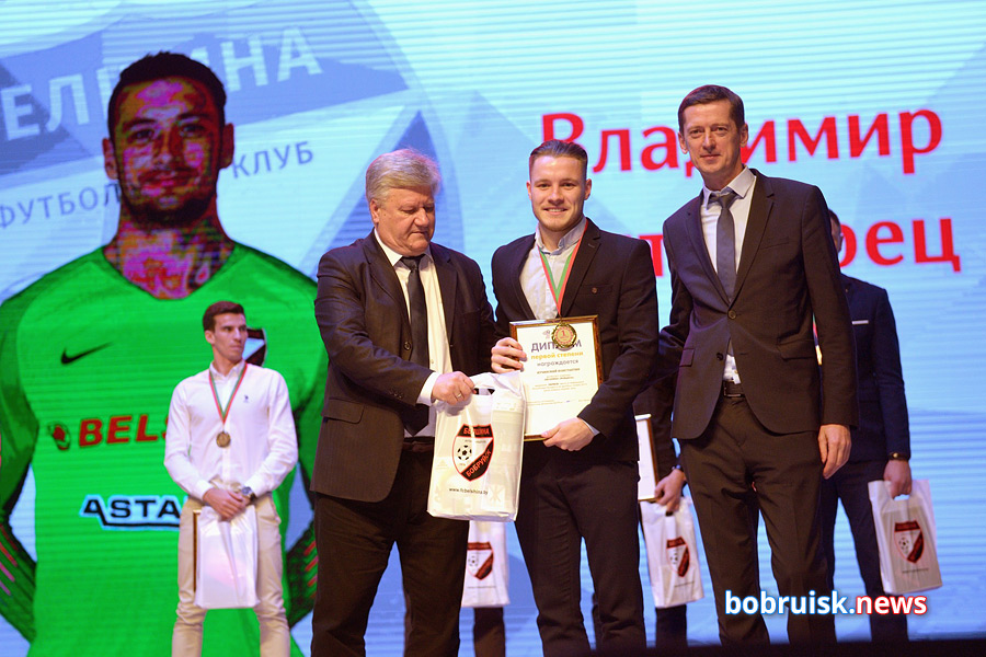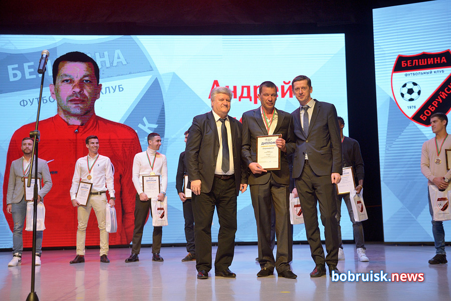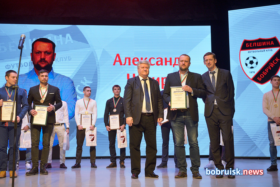 В четверг, 12 декабря, во Дворце искусств прошло торжественное мероприятие, ставшее одновременно подведением итогов футбольного года для Бобруйска и первым обозначением планов на год грядущий. Виновник торжества – футбольный клуб «Белшина», триумфатор первой лиги и обладатель путевки в элитный дивизион. Разделить успех с командой пришли болельщики клуба и высокие гости (в некоторых случаях два этих понятия сливались воедино).