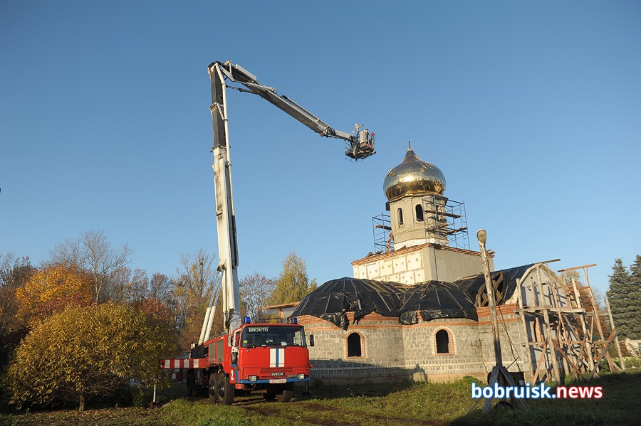 Сегодня, 15 октября, еще над одним строящимся православным храмом Бобруйска воссиял золоченый крест. Рано утром над куполом храма в честь Жировичской иконы Божией Матери, который находится в православном женском монастыре в честь Святых жен-мироносиц, стараниями строителей был воздвигнут этот крест.