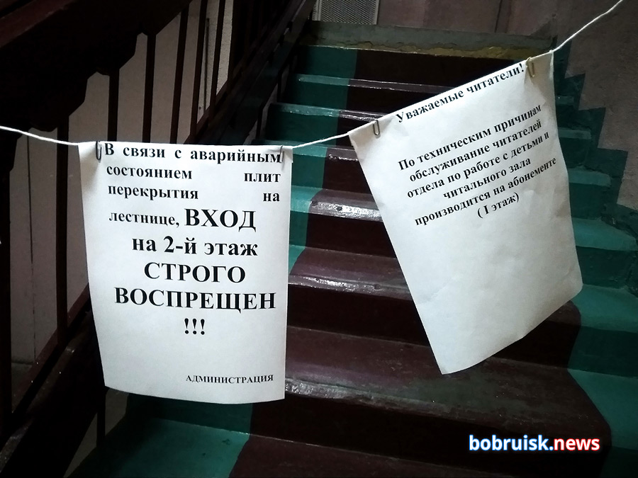 — Трещины в потолке обнаружили еще в 2017 году, когда делали ремонт и сняли потолочную плитку, — рассказала директор централизованной библиотечной системы Бобруйского района Любовь Ивановна Схаба. — Сейчас же ситуация критическая. Нам снова придется переезжать.