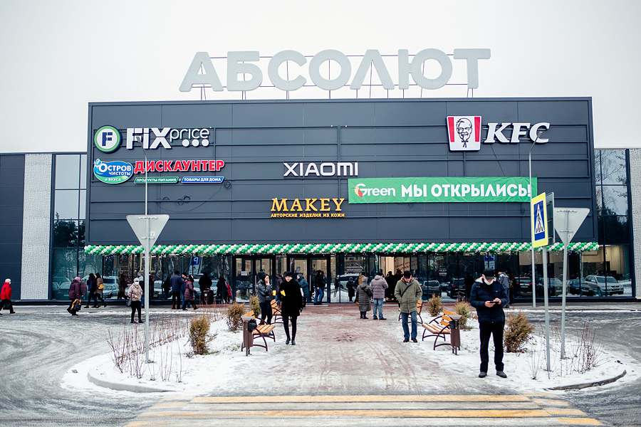 «Зеленый» супермаркет расположился в недавно построенном торговом центре «Абсолют» напротив еврейского кладбища. Площадь магазина – почти 2500 квадратов, на полках – порядка 22 000 видов товаров. По своим масштабам это один из самых крупных магазинов в Бобруйске.