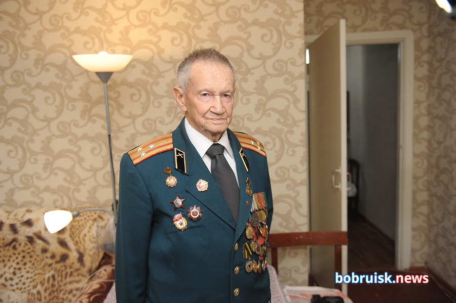 Мы беседуем, а дети и внуки Семена Залмановича только и успевают отвечать на телефон и открывать дверь гостям. В том числе и очень высоким. Поздравить настоящего полковника приехала представительная делегация во главе с председателем Бобруйского горисполкома А. В. Студневым.